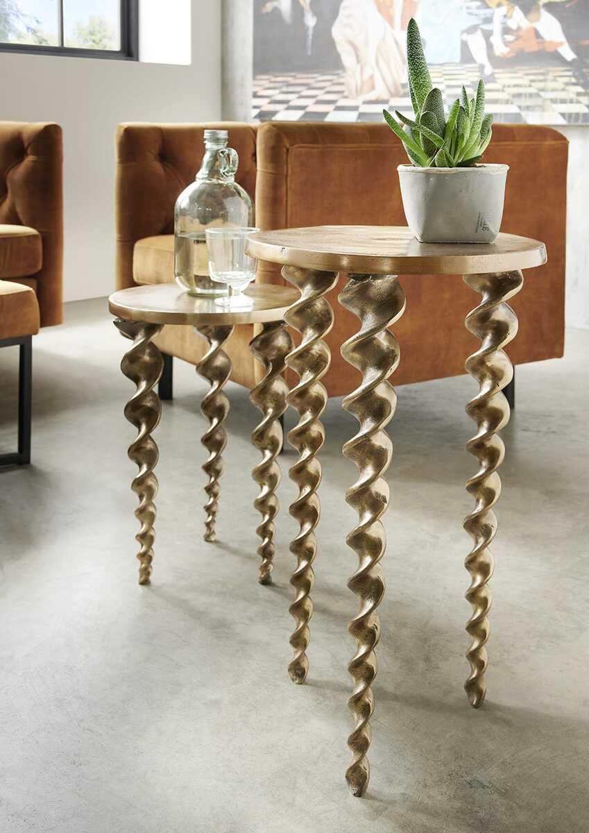 Tavolino Zilo 1 in alluminio color oro antico, Ø circa 35 cm / altezza 61 cmImmagine a destra (grande)