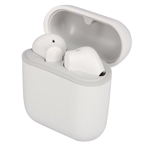 Auricolari wireless Akashi ALTBUDSBTWH. Tecnologia Bluetooth 5.0: connessione stabile e utilizzo in totale libertà. Impermeabili IPX5. 4h di autonomia in utilizzo. Custodia di ricarica da 300mAh per 20 ore. Controllo touch. Design in-ear.