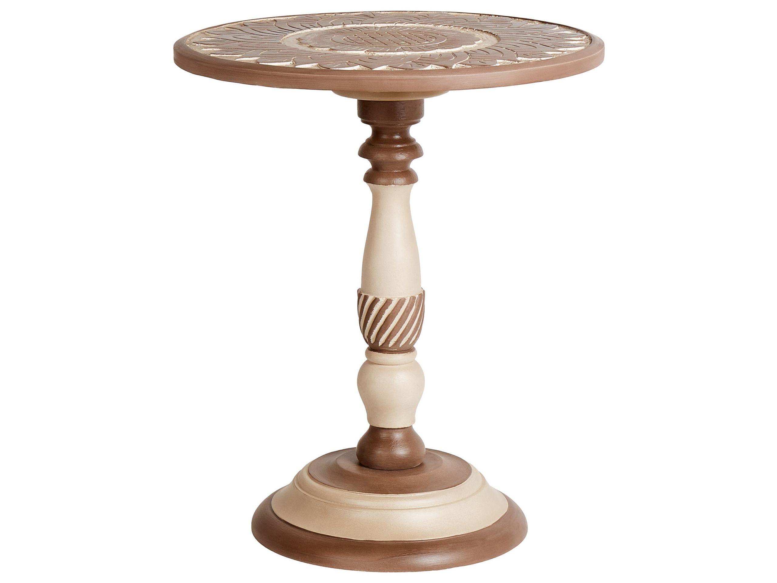 Tavolino in legno di mango. Questo elegante tavolino è realizzato in legno di mango, resistente e sostenibile, che conferisce un fascino naturale al tuo spazio abitativo. Gli intricati dettagli intagliati sul piano del tavolo aggiungono un tocco artistico, mentre la robusta base a piedistallo assicura stabilità e stile. Ideale da collocare accanto al divano o alla poltrona, questo tavolino unisce funzionalità e fascino.