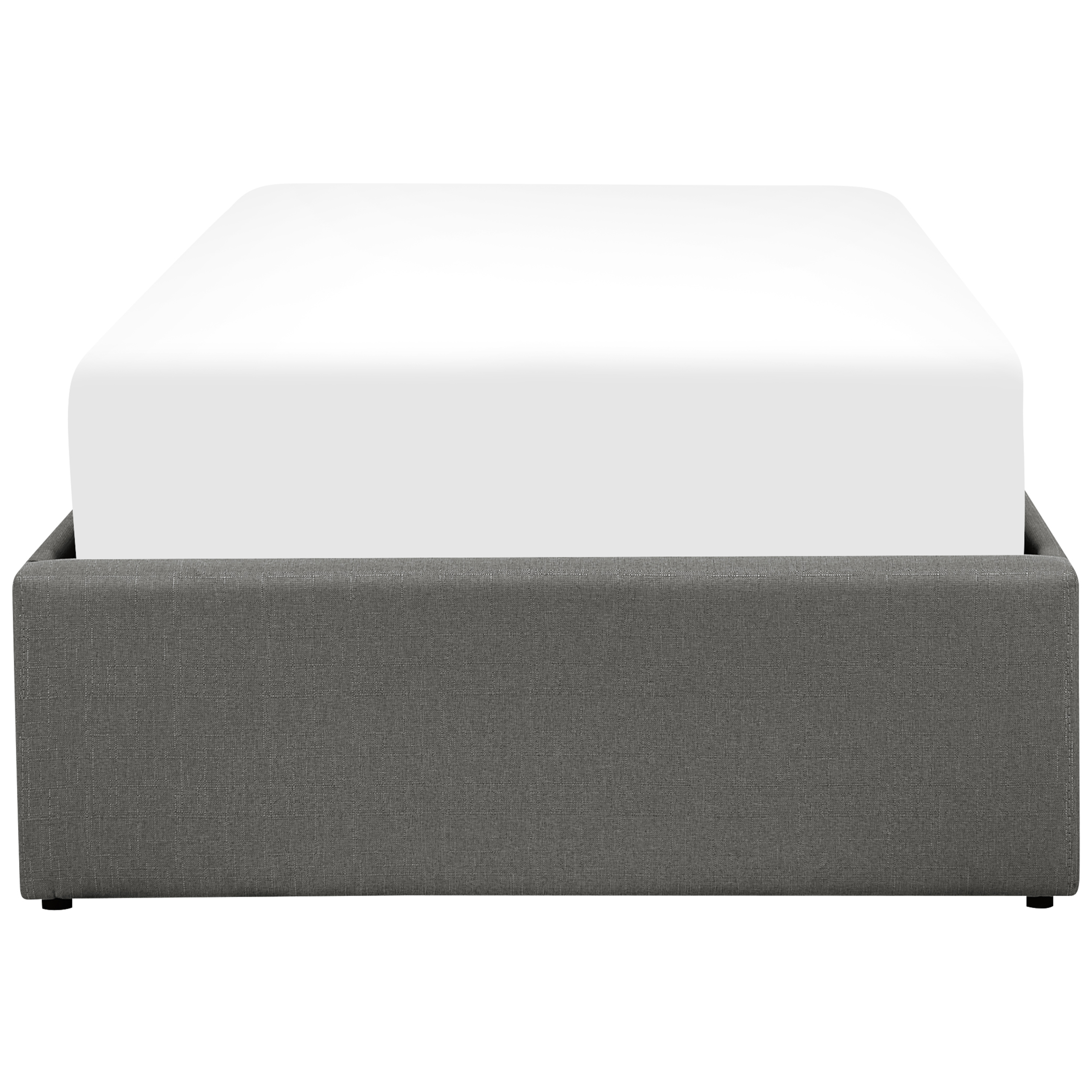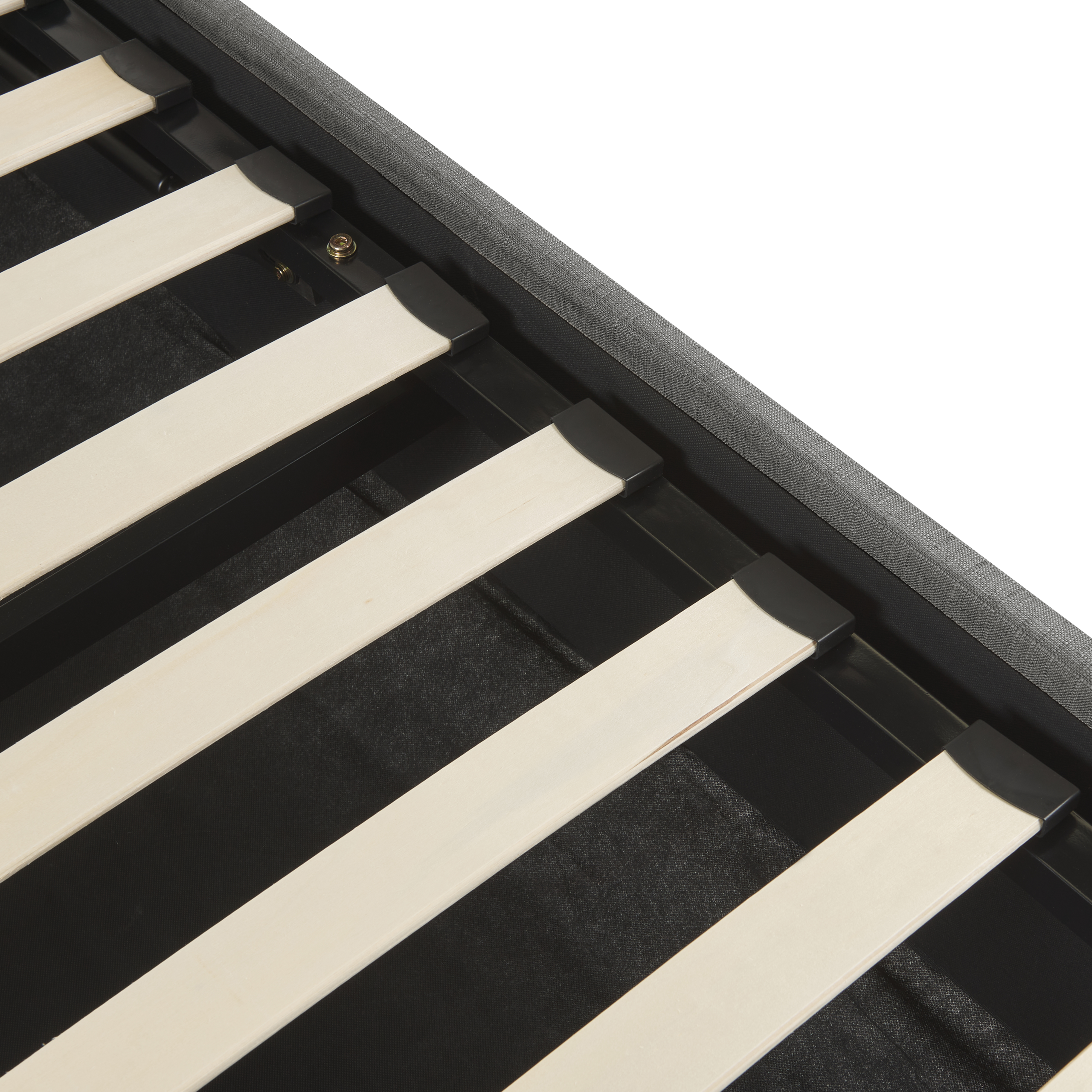 Struttura letto rivestita in tessuto con un pattern simile al lino con contenitore e rete a doghe. Porta l'eleganza in camera da letto con questo letto con rete a doghe dal design classico. Realizzato in tessuto di altissima qualità, presenta una solida struttura pensata per un riposo ottimale e una distribuzione del peso uniforme, mentre il suo design senza testiera e le dimensioni compatte, ne fanno un arredo davvero originale. Grazie all'ampio e capiente vano contenitore, ottimizzerai lo spazio, guadagnando praticamente un altro armadio.
