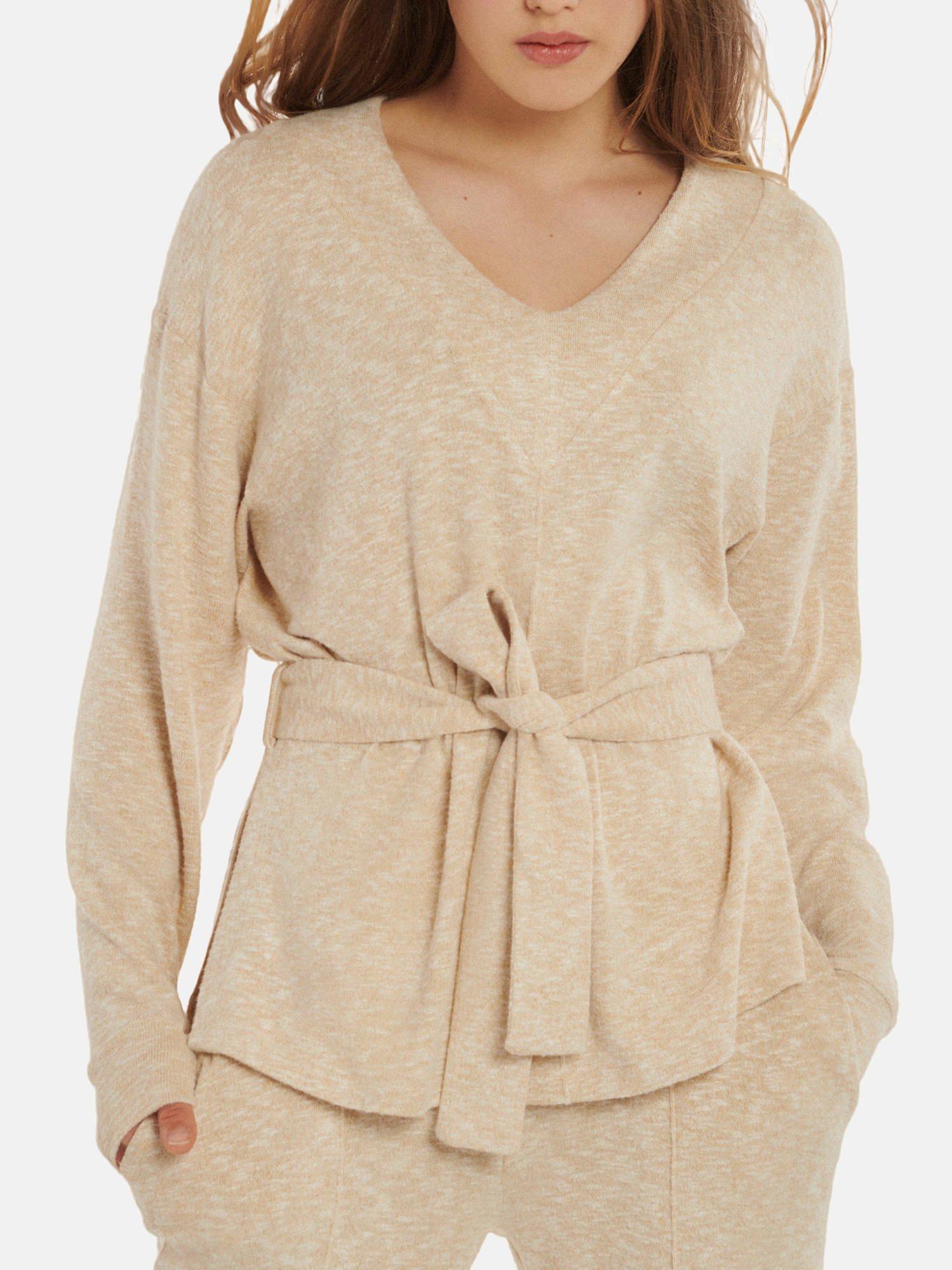 Il top a maniche lunghe Isadora con cintura della collezione Isadora di Lisca è un comodo top in stile pullover. Presenta uno scollo a V e cuciture delle spalle leggermente ribassate, con una sottile cucitura decorativa al centro della parte anteriore e posteriore. Il caldo materiale in maglia include maniche comode che si stringono sui polsini e uno spacco all'altezza dei fianchi. Questo capo è realizzato in maglia estremamente morbida, calda e confortevole nel colore sabbia-cashmere, con bordi e dettagli sottili per una silhouette senza tempo. La vestibilità raffinata e casual è ideale per essere indossata tutto il giorno, anche per lavorare da casa.