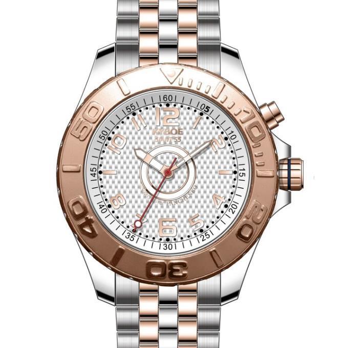 Die robusten und stylischen Kyboe Uhren bieten einen ausdrucksstarken Look, der zuverlässig und sicher durch den Geschäftsalltag begleitet. Mit ihrem sportlichen Design, der hochwertigen Qualität und Solidität strahlen die Uhren jederzeit Selbstbewusstsein und Trendbewusstsein aus. Kyboe Uhren passen zu jeder Gelegenheit - ob zum Freizeitlook mit Boyfriend-Jeans und lässigem Hemd oder zum klassischen Business-Outfit. Trendige Farben wie Roségold, Mintgrün oder Pink bieten vielfältige Kombinationsmöglichkeiten vor allem für Frauen, die einen stilsicheren und ausdrucksstarken Look bevorzugen. Kyboe Uhren überzeugen nicht nur durch ihr modernes und stylisches Design, sondern auch durch ihre technischen Details. Ausgestattet mit einem hochwertigen Uhrwerk von Citizen Miyota OS und einer Wasserdichtigkeit von über 100 Metern sind die Uhren robust und langlebig. Das Stahlgehäuse, die strapazierfähigen Silikonarmbänder und das saphirbeschichtete Mineralglas sorgen für hohe Widerstandsfähigkeit und beste Qualität. Ein detaillierter Index mit römischen Ziffern und eine starke LED-Beleuchtung, die die Leuchtkraft einer kleinen Taschenlampe erreicht, runden das technische Profil ab.