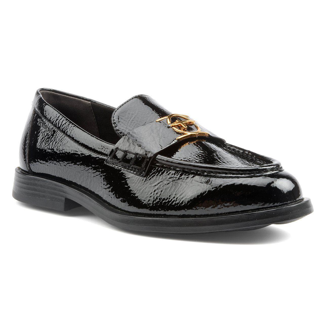 Questi mocassini sono scarpe classiche pensate per le occasioni formali. Realizzati in vernice sintetica, presentano una tomaia lucida e un tocco di raffinatezza. La fodera in tessuto assicura un comfort ottimale mantenendo un look elegante. Le solette e le suole sintetiche offrono eccezionale durata e flessibilità. I tacchi misurano 20 mm, rendendoli perfetti per feste, eventi o occasioni d'ufficio. I dettagli della scarpa includono cuciture decorative e un logo metallico dorato sulla tomaia. Il colore nero è un'opzione chic e formale che si adatta a ogni occasione.