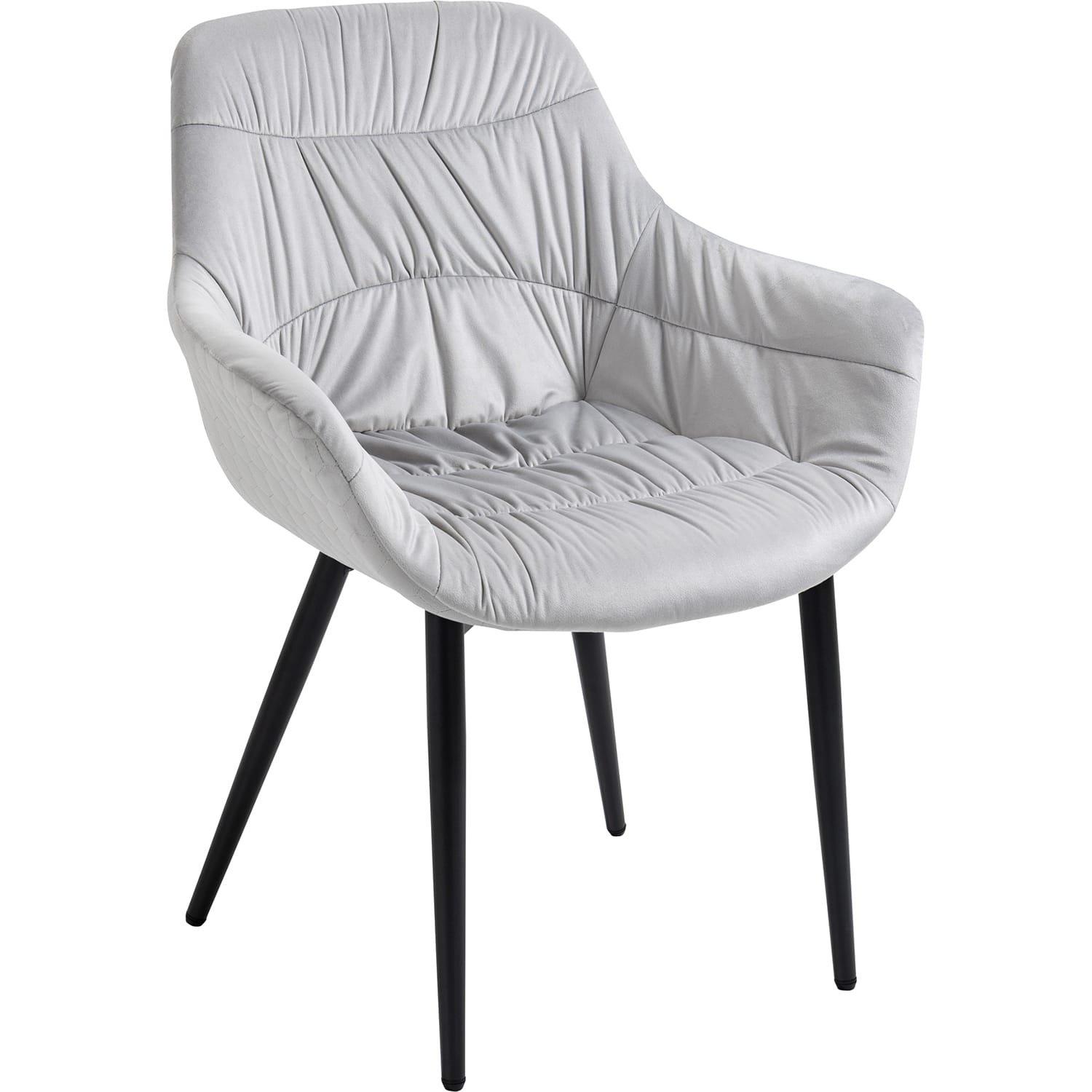 Questa poltrona di tendenza colpisce per il suo rivestimento in tessuto dall'aspetto vellutato e per la sua struttura a 4 piedi in metallo verniciato a polvere nero. Le gambe in metallo non solo garantiscono stabilità, ma si armonizzano perfettamente con il rivestimento della poltrona. La comoda scocca con braccioli offre un comfort di seduta di prima classe. Le impunture sulla parte interna del sedile e dello schienale e la trapuntatura a nido d'ape che adorna la parte esterna sono un vero e proprio richiamo visivo per il vostro salotto. Grazie al suo design stravagante, questa sedia imbottita può essere utilizzata anche come sedia da conferenza. Indipendentemente dal luogo di utilizzo, voi e i vostri ospiti apprezzerete il comfort della seduta.Sedile e schienale con cuciture incrociate all'interno, cuciture a nido d'ape all'esterno, carico massimo circa 110 kg, altezza seduta: circa 46 cm, profondità seduta: circa 41 cm, larghezza seduta: circa 41 cm, altezza braccioli: circa 61 cm.Poltrona dal design modernoRivestimento con cuciture a croce all'interno e a nido d'ape all'esternoAttraente rivestimento in velluto grigio chiaroLa struttura a 4 gambe in metallo nero garantisce stabilitàSuperficie molto facile da pulire e resistenteGambe in metallo verniciato a polvere nero