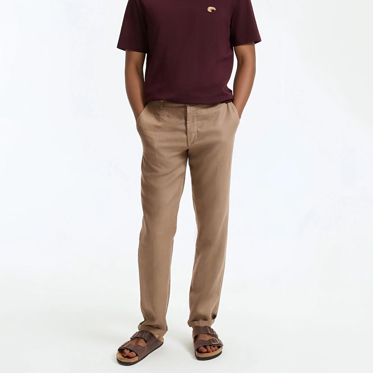 Questi pantaloni in lino offrono un'opzione comoda ed elegante per varie occasioni. Il tessuto leggero garantisce traspirabilità, rendendoli adatti per climi più caldi o ambienti rilassati. Il design presenta un classico taglio dritto.