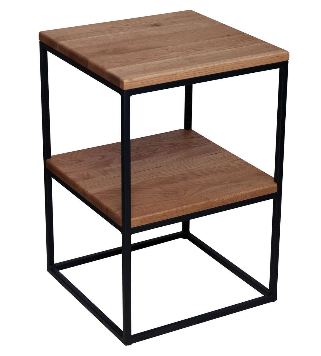 Tavolino in rovere selvatico oliato 18mm, con 2 vani portaoggetti, gambe in metallo verniciato a polvere nero 15x15mm, 40 x 40 x 60 cm