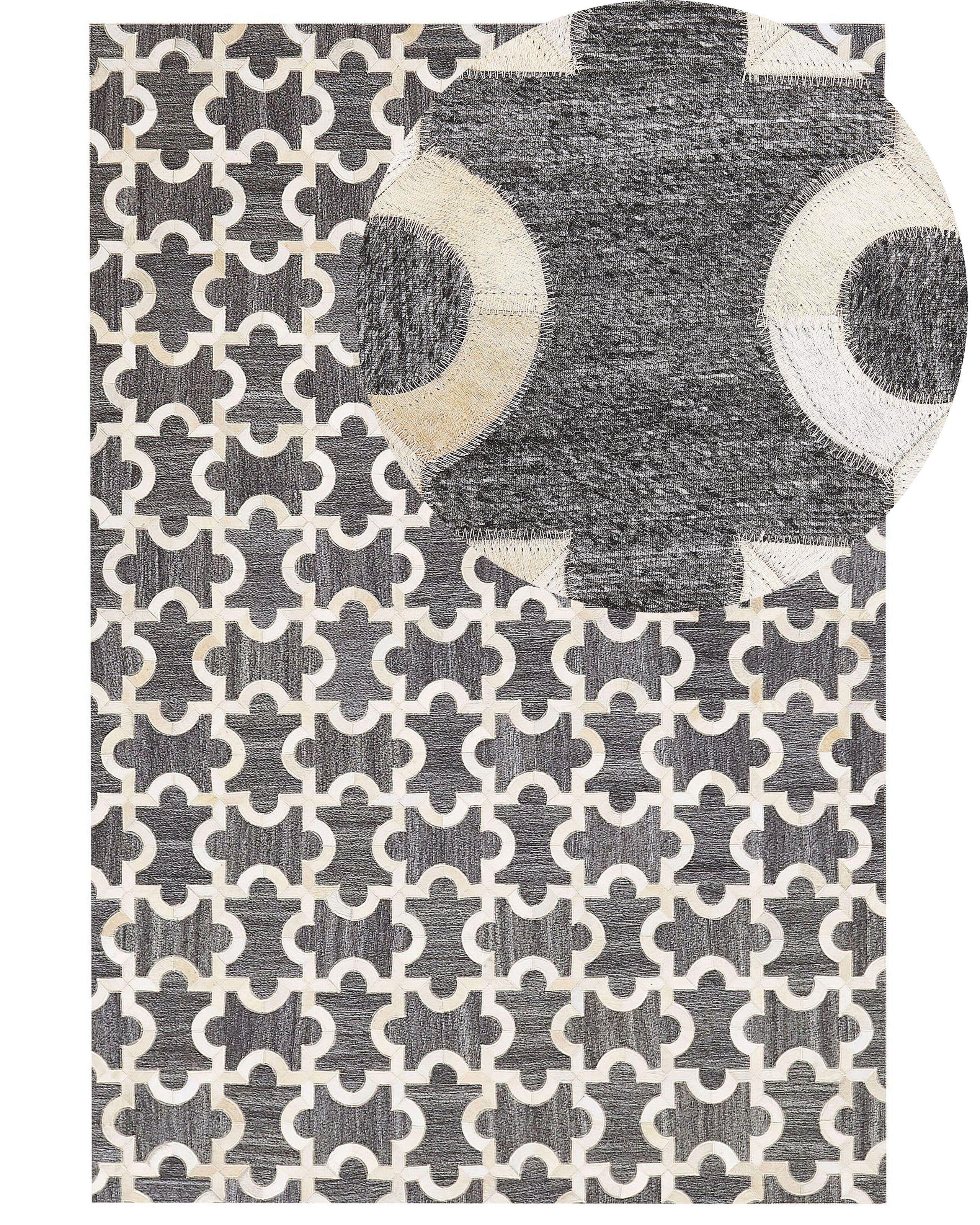 Tappeto rettangolare con aspetto puzzle. Questo tappeto si sposa bene con interni in stile moderno. Realizzato a partire da jacquard e pelle bovina di alta qualità, presenta un prezioso motivo, per un certo tocco retrò davvero unico. Lo strato di feltro protegge il pavimento dall'usura.
