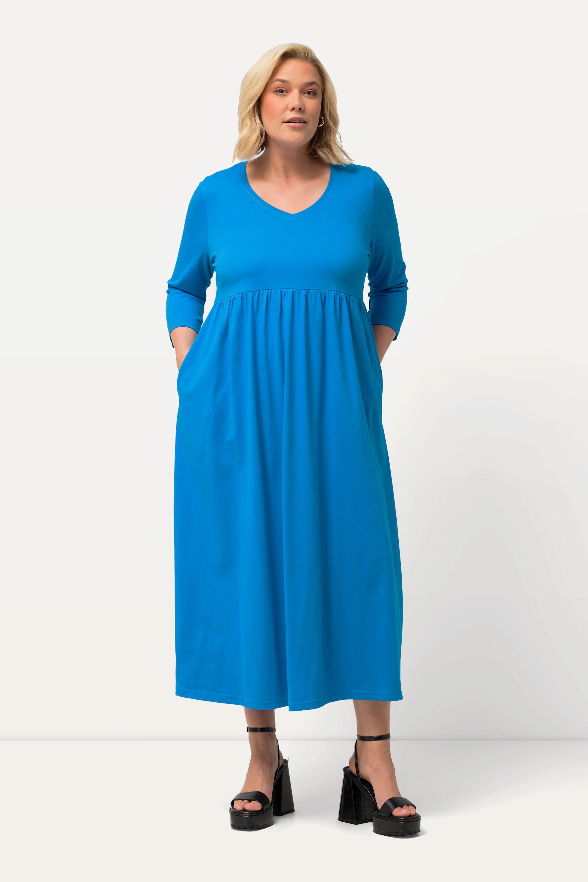 Ulla Popken Abito in jersey Cucitura impero Scollo a V Maniche 3/4 Tasche
