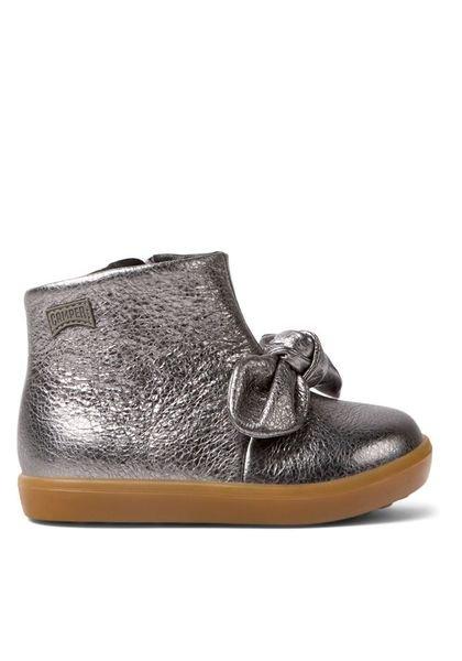 Stivali per bambini in pelle argentata con chiusura a zip, soletta OrthoLite® e suola in gomma 100%.