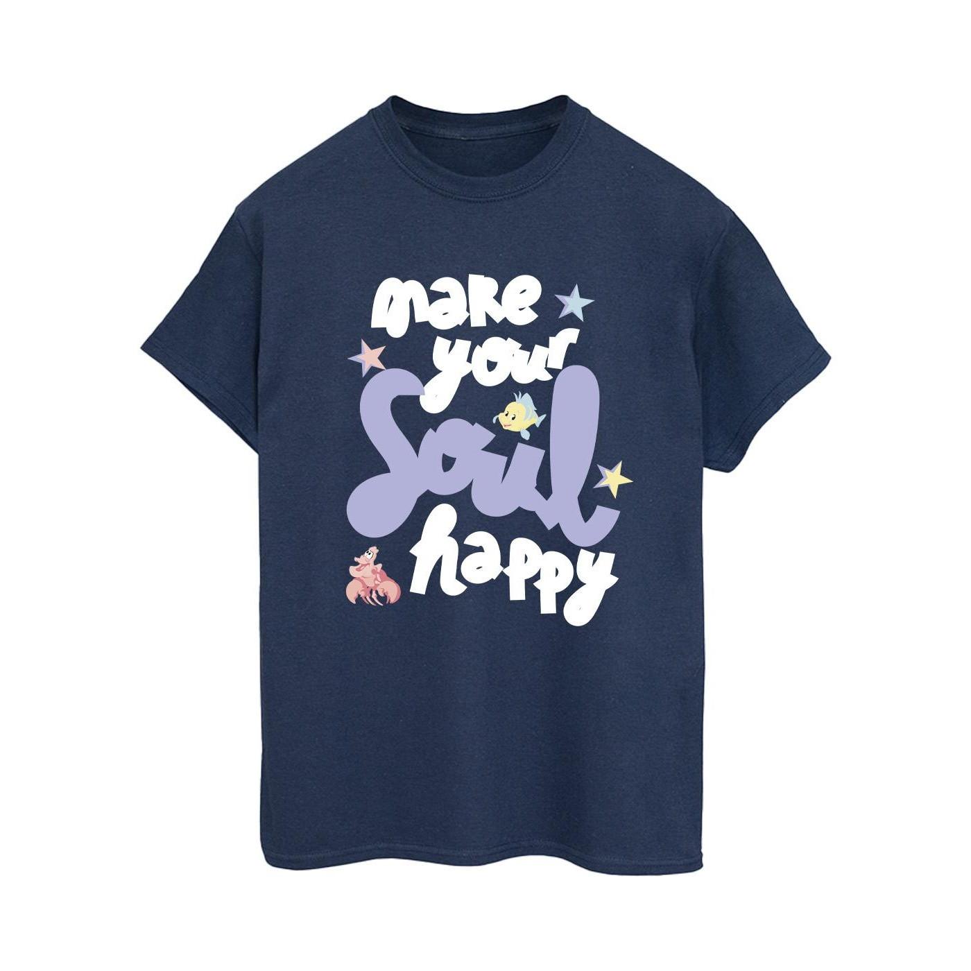 Questa T-shirt presenta una deliziosa grafica ispirata a La Sirenetta di Disney. Il design include la frase "make your soul happy" insieme agli amati personaggi Flounder e Sebastian, rendendola un'aggiunta affascinante a qualsiasi guardaroba casual.