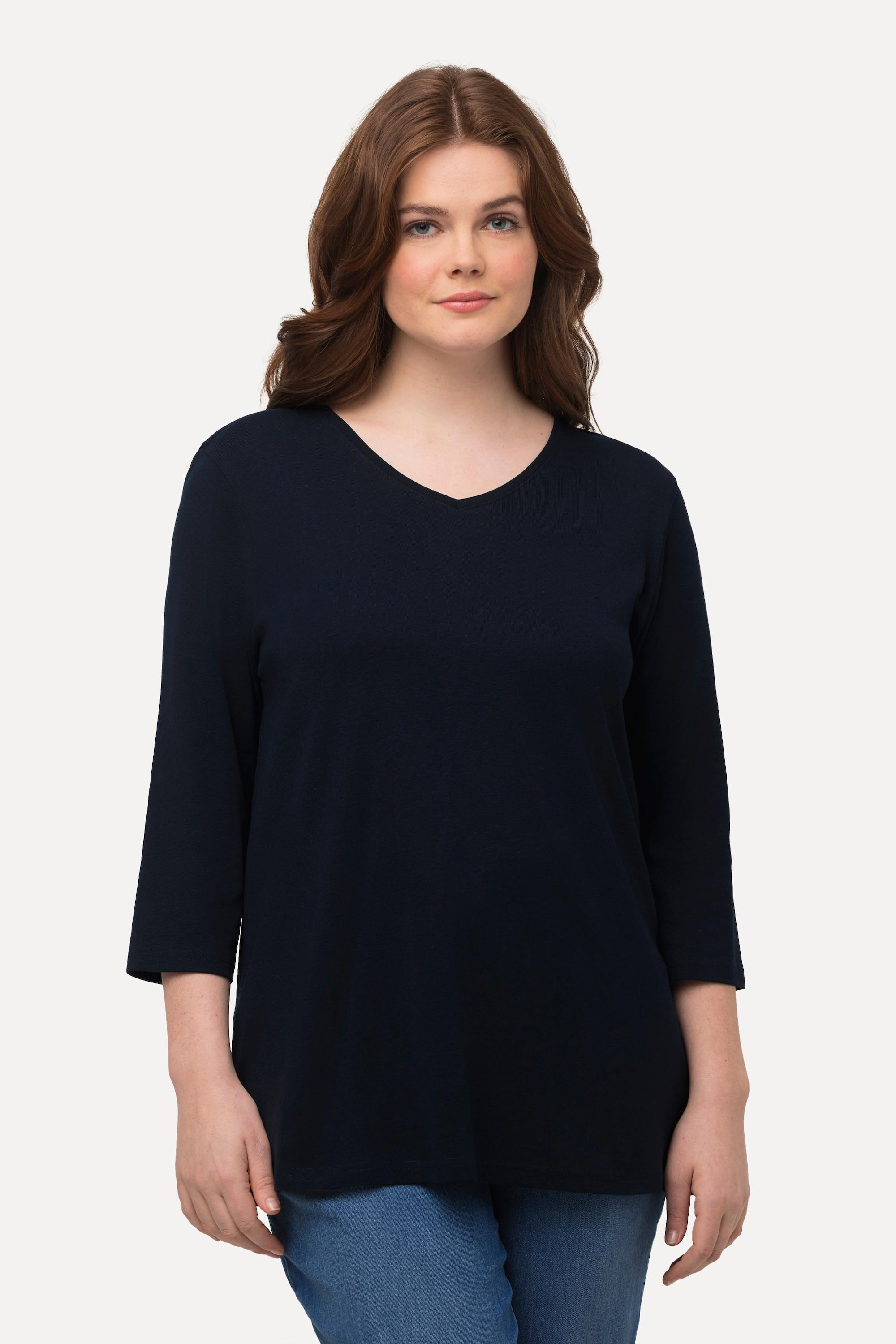 Ulla Popken Maglia Jersey a Costine Scollo a V Maniche 3/4