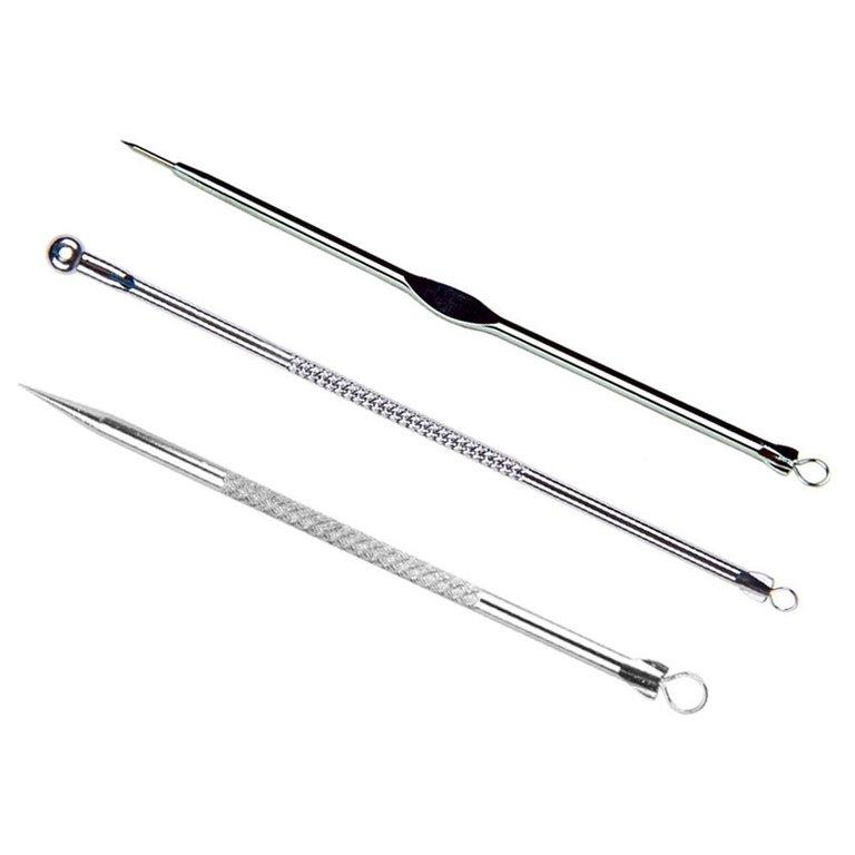 Mantieni il viso pulito con questo kit contenente tre diversi strumenti per rimuovere e svuotare i pori ostruiti e l'acne, sia per il bene dell'aspetto che per ridurre il rischio di cicatrici o infiammazioni. Gli strumenti sono realizzati in acciaio inossidabile e dotati di punte appuntite e passanti per forare e pulire, sono poi facili da pulire in acqua bollente o disinfettare con alcol.
