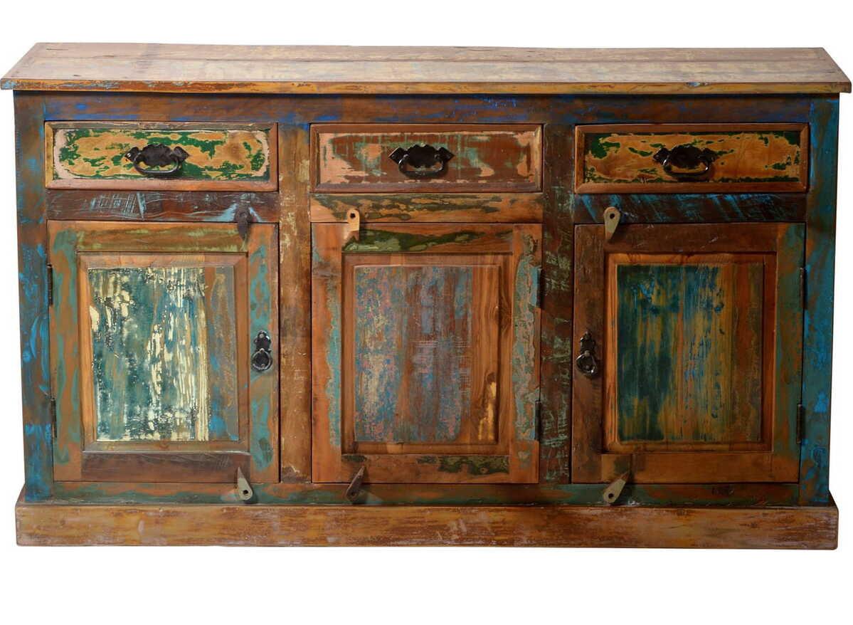 Vintage Coloured Agra? In questa isola da sogno nel caldo Oceano Indiano tropicale, abbiamo visto per la prima volta mobili ricavati da vecchie barche da pesca. E con quasi 4 milioni di abitanti su un'isola, le barche da pesca sono davvero tante? Queste sono tradizionalmente dipinte in un'ampia varietà di colori, colori che si incontrano ripetutamente a Bali: alberi dai fiori tropicali colorati come frangipani, bouganville o ibisco, tonalità di verde come le terrazze di riso di Ubud, blu come il cielo, ma anche nero come la lava raffreddata dagli abbondanti vulcani. Tutti questi colori si ritrovano nei mobili di questa serie. Un occhio sapiente "posa" il legno in modo tale da creare ancora una volta un'immagine armoniosa. La combinazione di forti tracce d'uso con il metallo rifinito in modo da sembrare "vecchio" dà vita a un particolare tipo di "design di fabbrica".