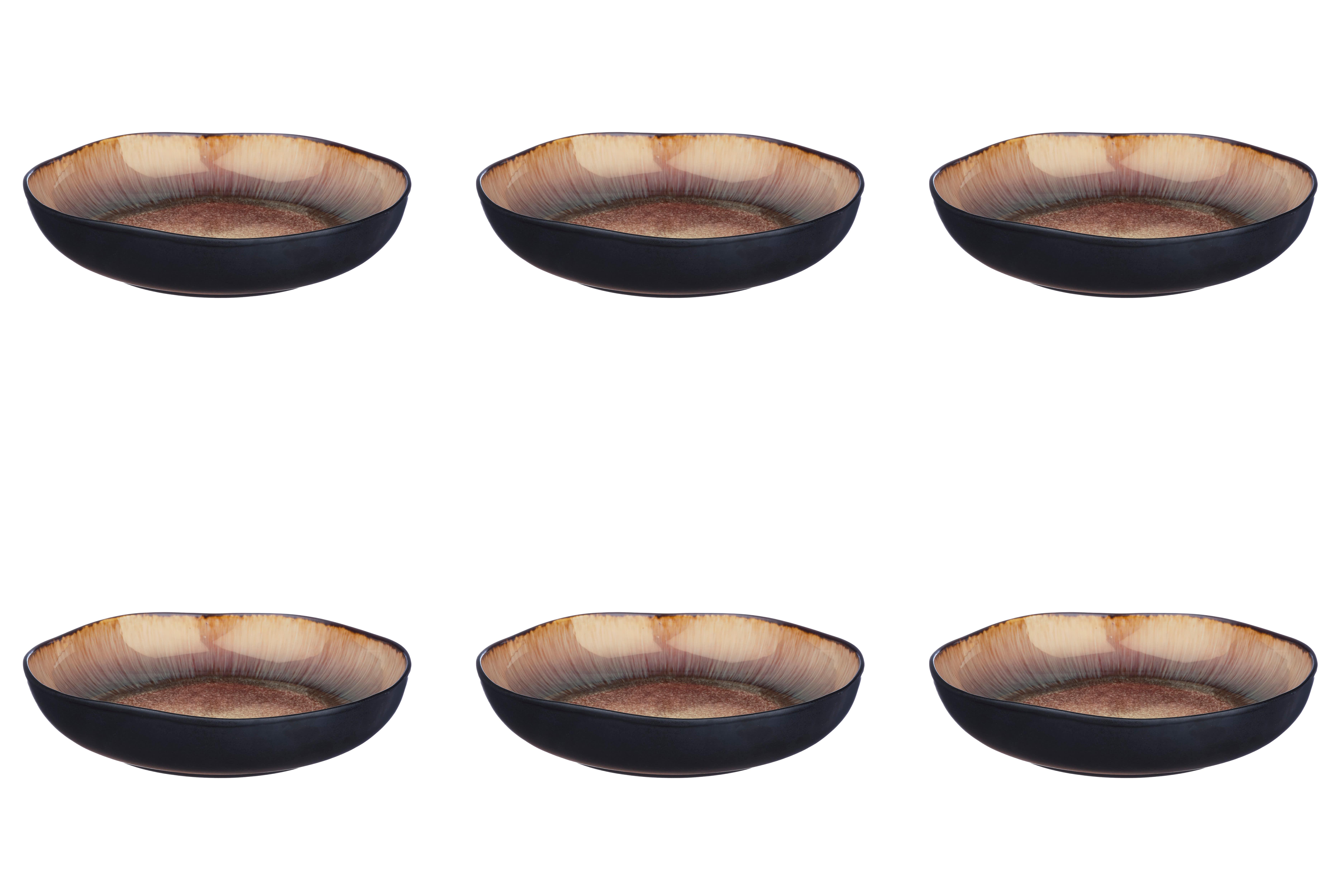 Contiene: 6 piatti fondi Ø22,5 cm Collezione REACTIV / gamma IRIS / versione WILD BROWN Realizzato in gres con smalto reattivo Sfumatura beige e marrone Lavabile in lavastoviglie, adatta al microonde e al forno (180°C) Dimensioni di un pezzo (L x P x A) 22,5 x 22,5 x 5 cm Consegnato in confezione infrangibile