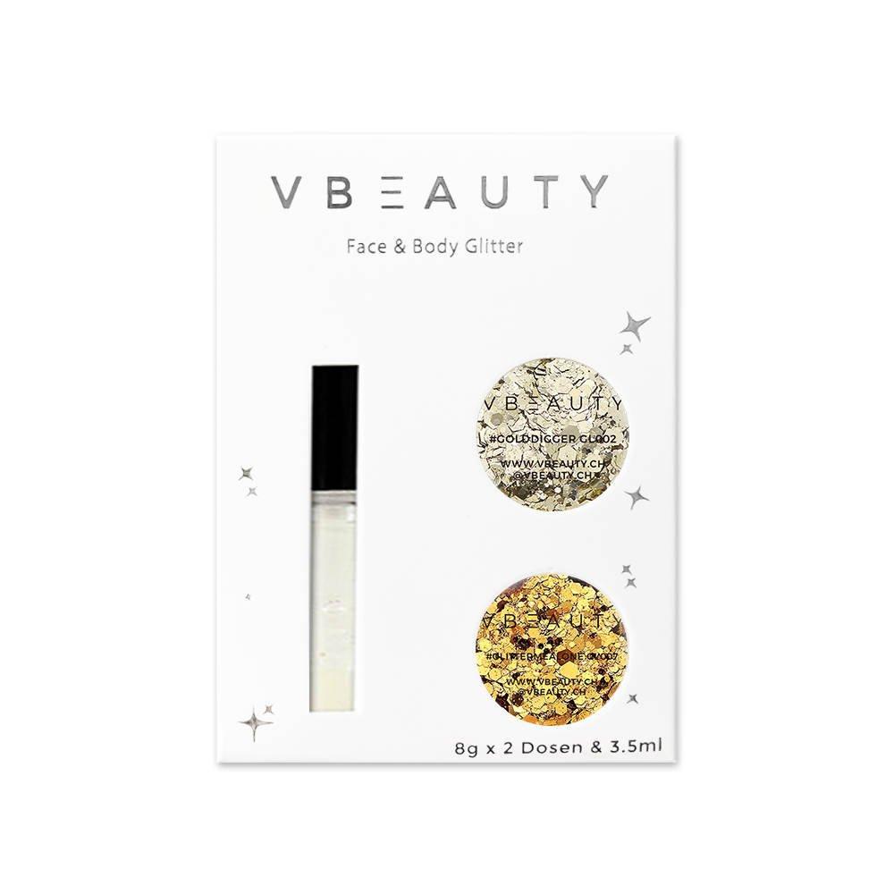 Affascinante Chunky Glitter per un incantevole gioco di colori! Per il viso e il corpo: VBEAUTY Chunky Glitter aggiunge un make-up scintillante e di lunga durata a qualsiasi look da festival o da festa. Combinate i Chunky Glitter con i nostri Festival Face Jewels per un effetto ancora più sensazionale! Il set contiene due diversi Chunky Glitter e un primer per un'applicazione senza sforzo.