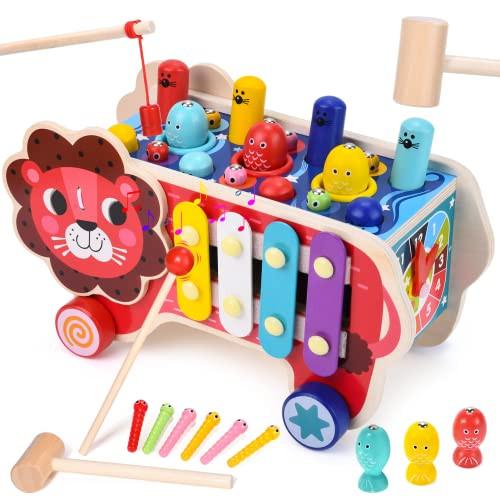 Activity-board, 7-in-1 Holzklopfspiel Klopfbank Angelspiel Hammerspiel Holzspielzeug Xylophon Uhr Kinderspielzeug Motorikspielzeug Lernspielzeug