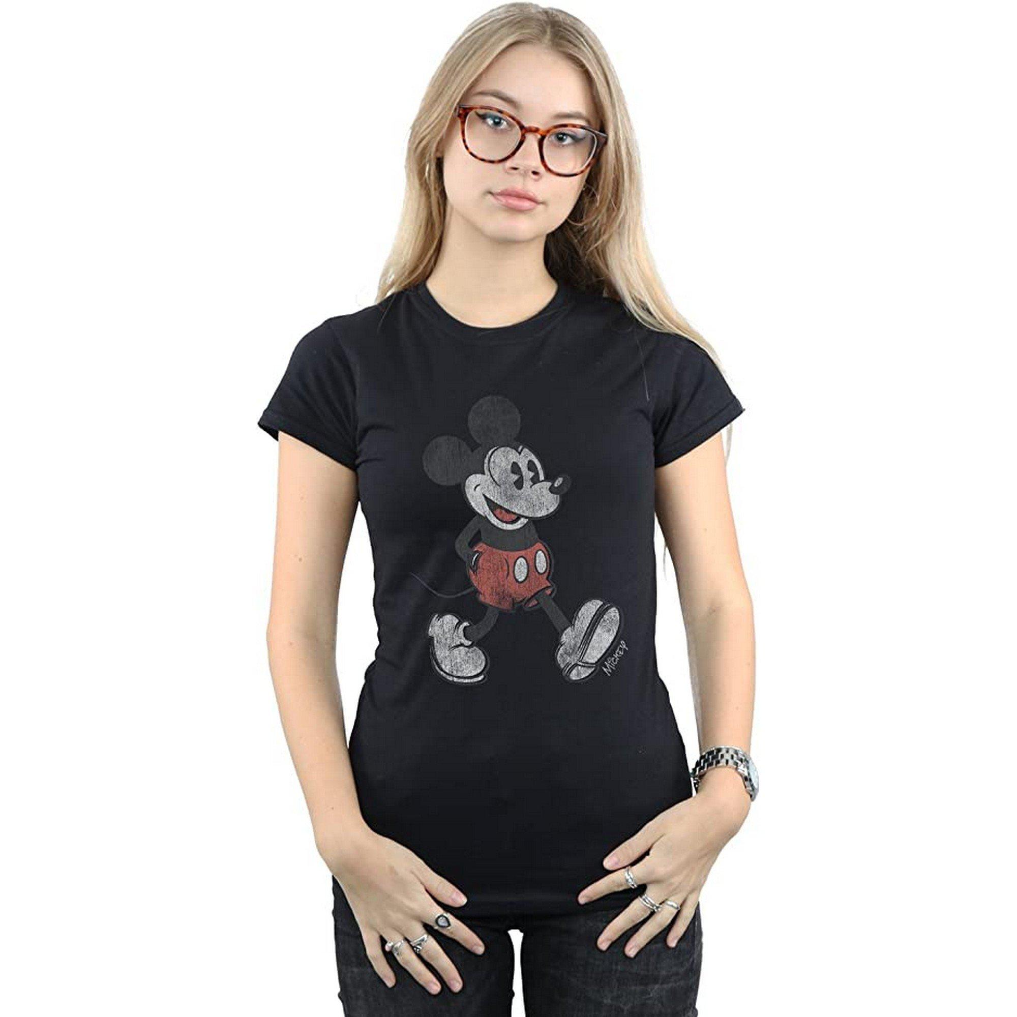 Questa classica t-shirt presenta una grafica invecchiata di Topolino in posa di camminata, offrendo un look di ispirazione vintage. Il design è perfetto per i fan dell'iconico personaggio, fornendo un'opzione comoda ed elegante per l'uso quotidiano.