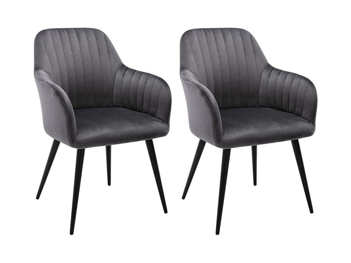 Vente-unique, Sedia con braccioli Velluto e Metallo Nero Grigio Lotto di 2 ELEANA
