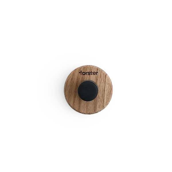 Il gancio rotondo di alta qualità di Forster Home è realizzato in legno di rovere o noce certificato FSC e in acciaio verniciato a polvere o spazzolato.