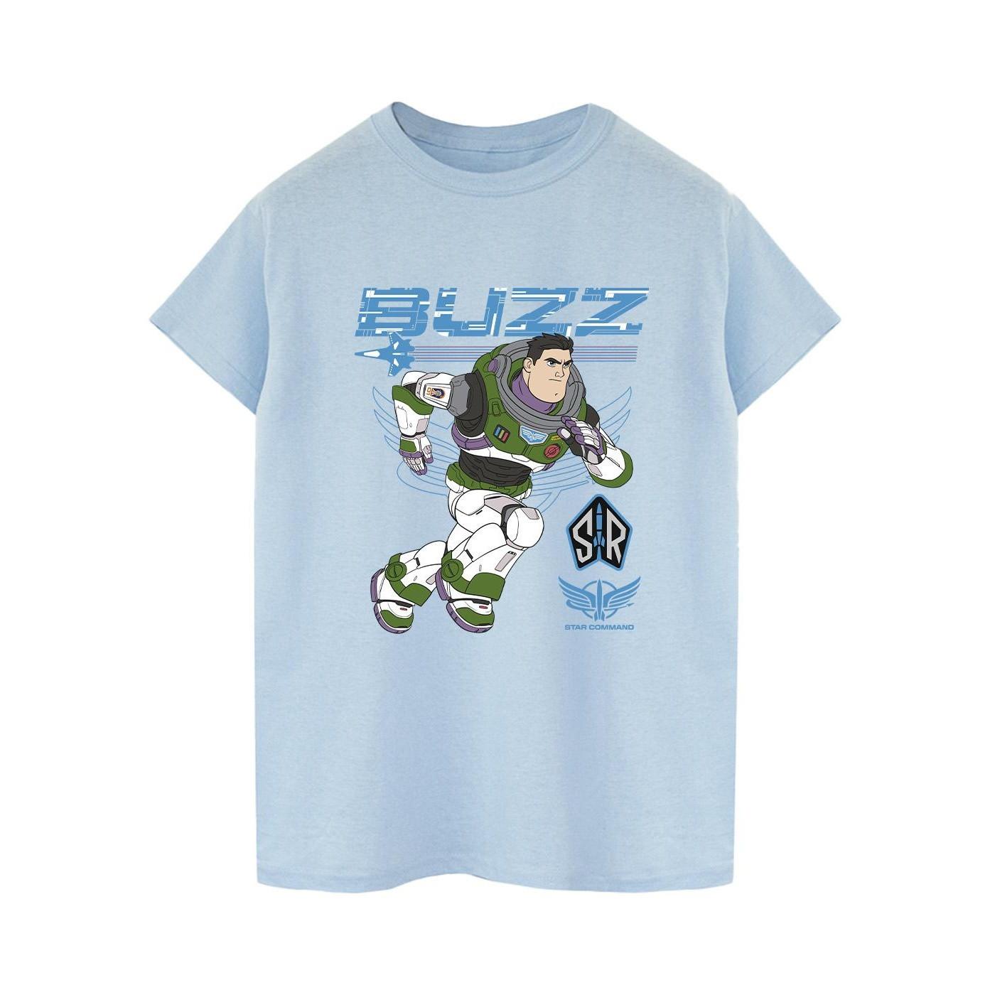Questa T-shirt presenta una grafica dinamica di Buzz Lightyear in azione, pronto per qualsiasi avventura. Il design cattura lo spirito di Star Command, rendendola un'ottima aggiunta per i fan.