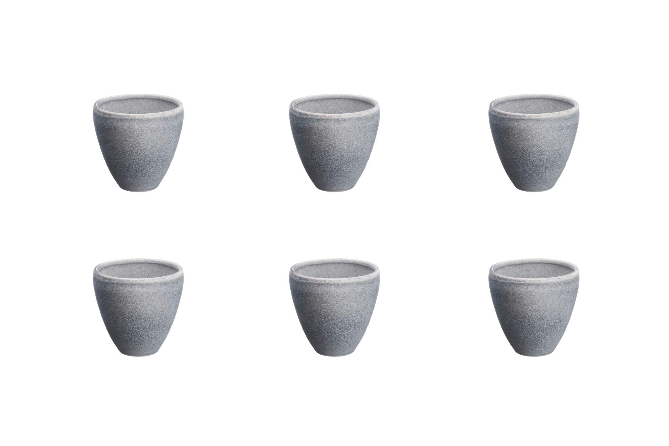 Questa tazzina è semplicemente perfetta. Non troppo grande e non troppo piccolo. È adatto a tanti diversi tipi di preparazione del caffè e, grazie al suo design semplice, anche per l'aperitivo o per i bicchieri. Per quanto riguarda la produzione, dopo una prima cottura dell'argilla a bassa temperatura, sul gres vengono applicati smalti reattivi di diversi colori e i pezzi ceramici vengono immersi in acqua dopo l'uscita dal forno, creando uno shock termico e creando l'effetto desiderato. L'aspetto delle sfumature di colore dipende dalla tecnica di cottura e dal metodo di applicazione dello smalto. La collezione STONE sembra essere scolpita direttamente nella roccia delle scogliere di Étretat, nel nord della Francia. Il suo colore calcareo grigio tempesta apporta un tocco minerale alla tavola, dove si crea un'atmosfera rilassata mentre si mangia. Grazie a questa collezione contemporanea, con il suo stile grezzo e decisamente scandinavo, la semplicità si ritrova nella naturalezza.- Contiene: 6 tazze 15 cl - Collezione Stone / Declinazione MOON GRAY - Realizzato in gres con rivestimento reattivo - Grigio chiaro - Lavabile in lavastoviglie, microonde e forno sicuro (180°C) - Dimensioni di un pezzo (L x P x A) 8 x 8 x 7,5 cm / Capacità 15 cl - Fornito in confezione infrangibile