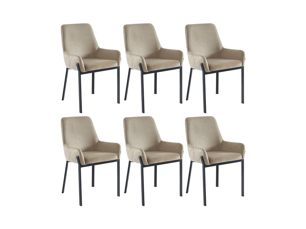 PASCAL MORABITO, Sedia con braccioli in Velluto e Metallo Beige - Lotto di 6 - CAROLONA di Pascal MORABITO