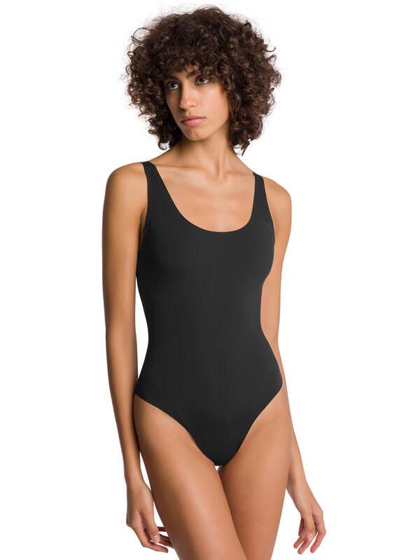 Questo body è realizzato in un innovativo tessuto a coste naturali, piacevolmente morbido sulla pelle. Presenta un taglio classico ed elasticizzato e spalline regolabili individualmente per una vestibilità confortevole. I bordi incollati offrono un look moderno e pulito, e il capo è foderato con un tassello.