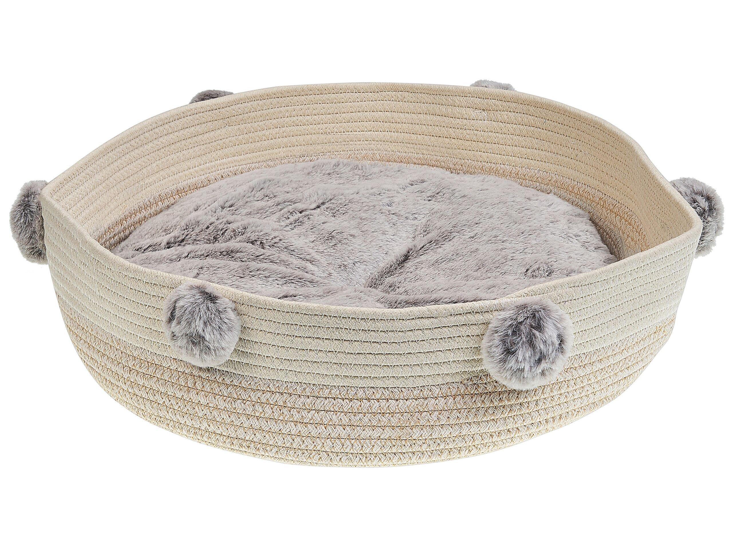 Cuccia rotonda per cani o gatti con imbottitura soffice. Questo morbido lettino rotondo per animali domestici diventerà il luogo preferito del vostro animale per riposare e dormire. La parte esterna è realizzata in cotone resistente, mentre l'interno è imbottito con un morbido e piacevole poliestere, ed è lavabile. Il lettino è decorato con graziosi pompon grigi, che gli conferiscono un aspetto affascinante.