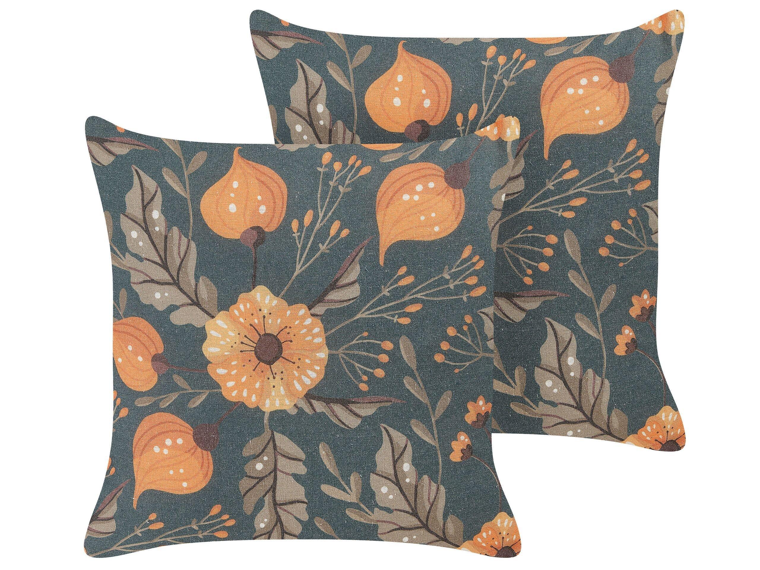 2 cuscini con motivo floreale. Dona alla tua casa un look rinnovato con questo set di due cuscini. Realizzato in materiale di alta qualità e dotato di una morbida imbottitura, ogni fodera è dotata di una comoda chiusura a zip. Il sorprendente motivo rende il set di cuscini una decorazione accattivante per qualsiasi camera da letto o soggiorno di classe.