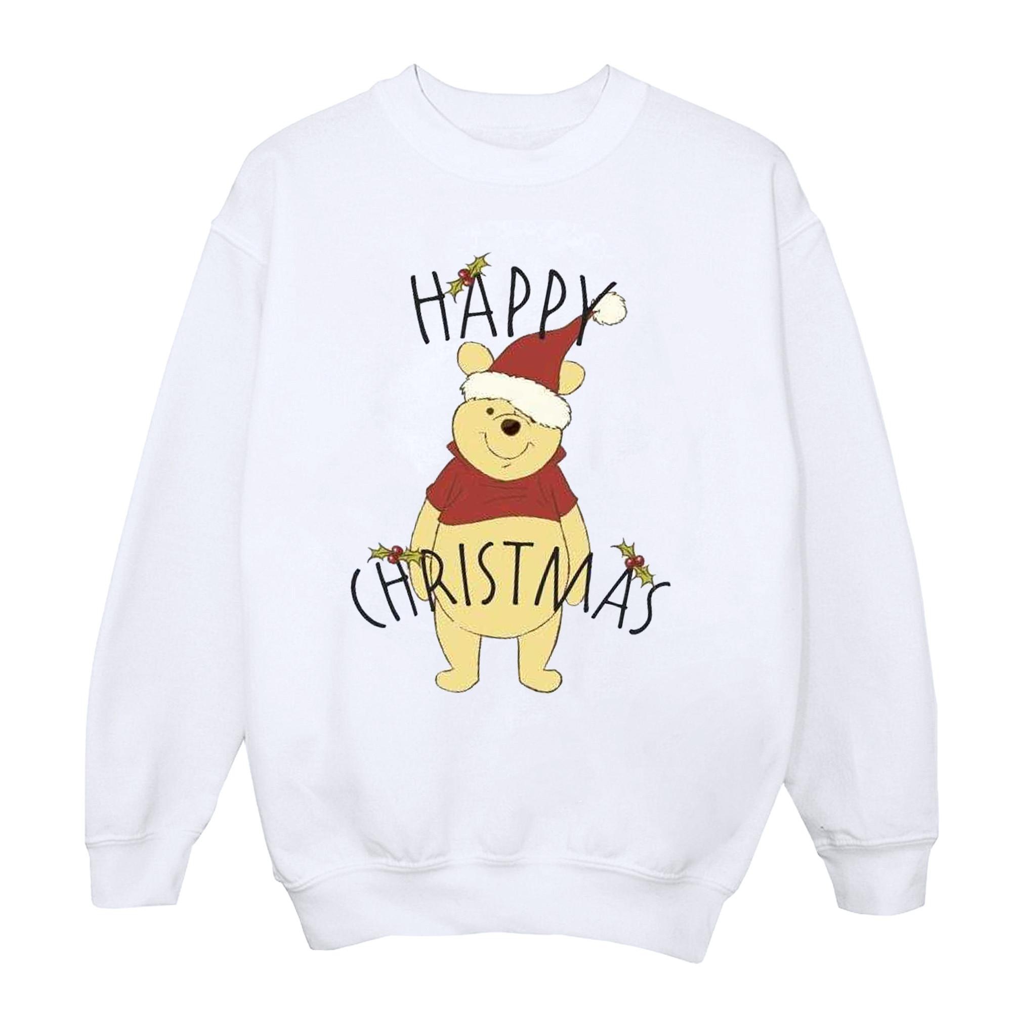 Questa felpa festiva presenta una deliziosa grafica di Winnie the Pooh vestito con un cappello da Babbo Natale e una sciarpa, circondato da agrifoglio e le parole "Happy Christmas". È una scelta incantevole per le celebrazioni natalizie o per aggiungere un tocco di allegria all'abbigliamento quotidiano.