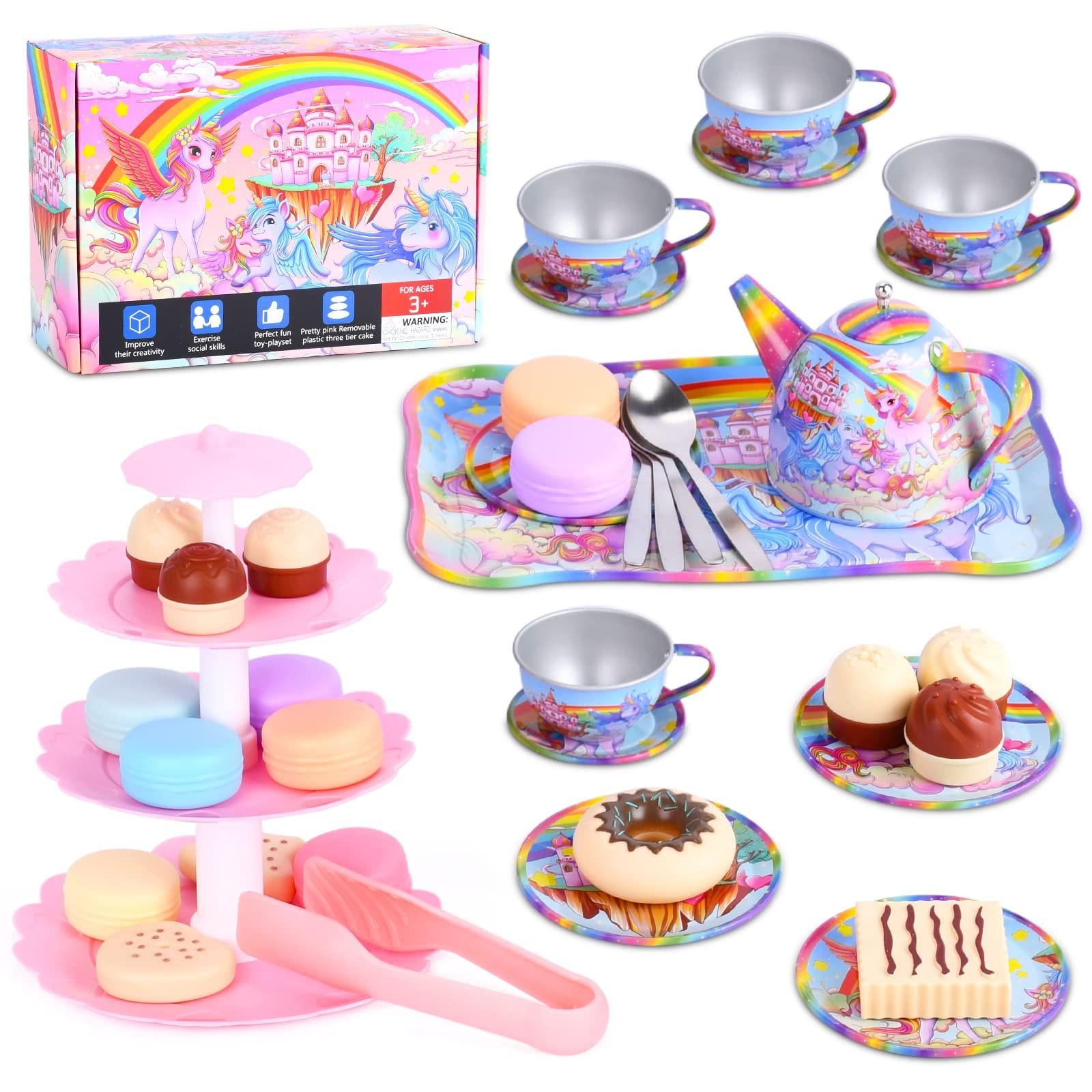 Activity-board, Einhorn Wackelkäfer Teeservice Tin Teekanne Set für Kinder Tee Party lustiges