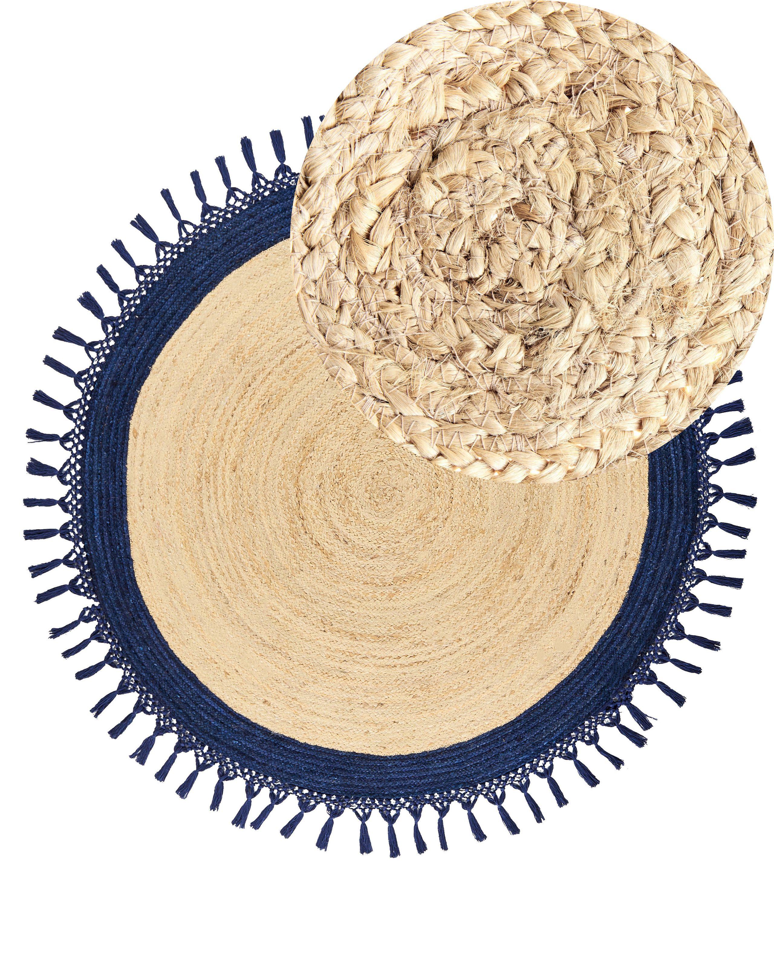 Tappeto a trama piatta fatto a mano. Valorizza il tuo interno con questo tappeto rotondo in iuta e aggiungi un tocco di calore e carattere che risuona in qualsiasi stanza. Intrecciato a mano con cura dalla miscela di iuta e cotone, è resistente e di alta qualità. Le intricate texture e le tonalità naturali del tappeto creano una fusione armoniosa che si adatta sia agli estetismi tradizionali che boho.