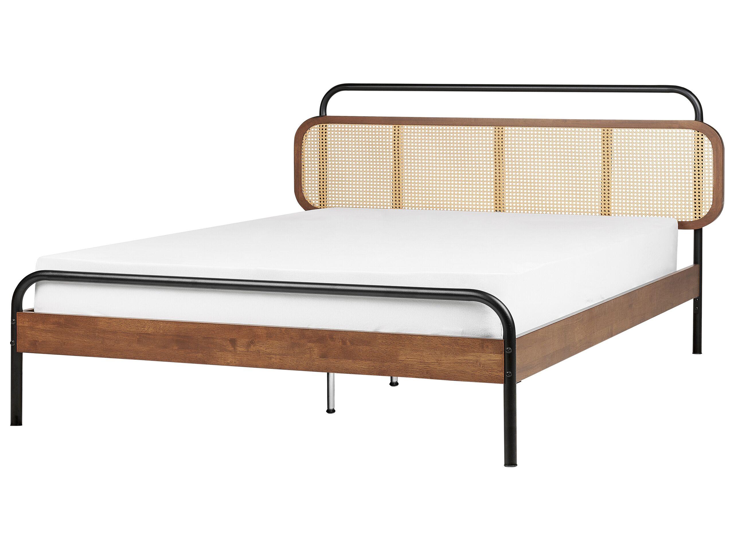 Struttura letto in legno con testiera a treccia viennese. Goditi notti di riposo con questo letto, che presenta una testata ornata da una affascinante treccia in rattan. Questo letto armonizza stile e comfort, garantendo che il tuo sonno sia tanto sereno quanto elegante. Costruito con MDF resistente e dotato di una robusta base a doghe, assicura qualità duratura e un supporto supremo. Sorretto da eleganti gambe in metallo, il suo design senza tempo si integra perfettamente in qualsiasi ambiente.