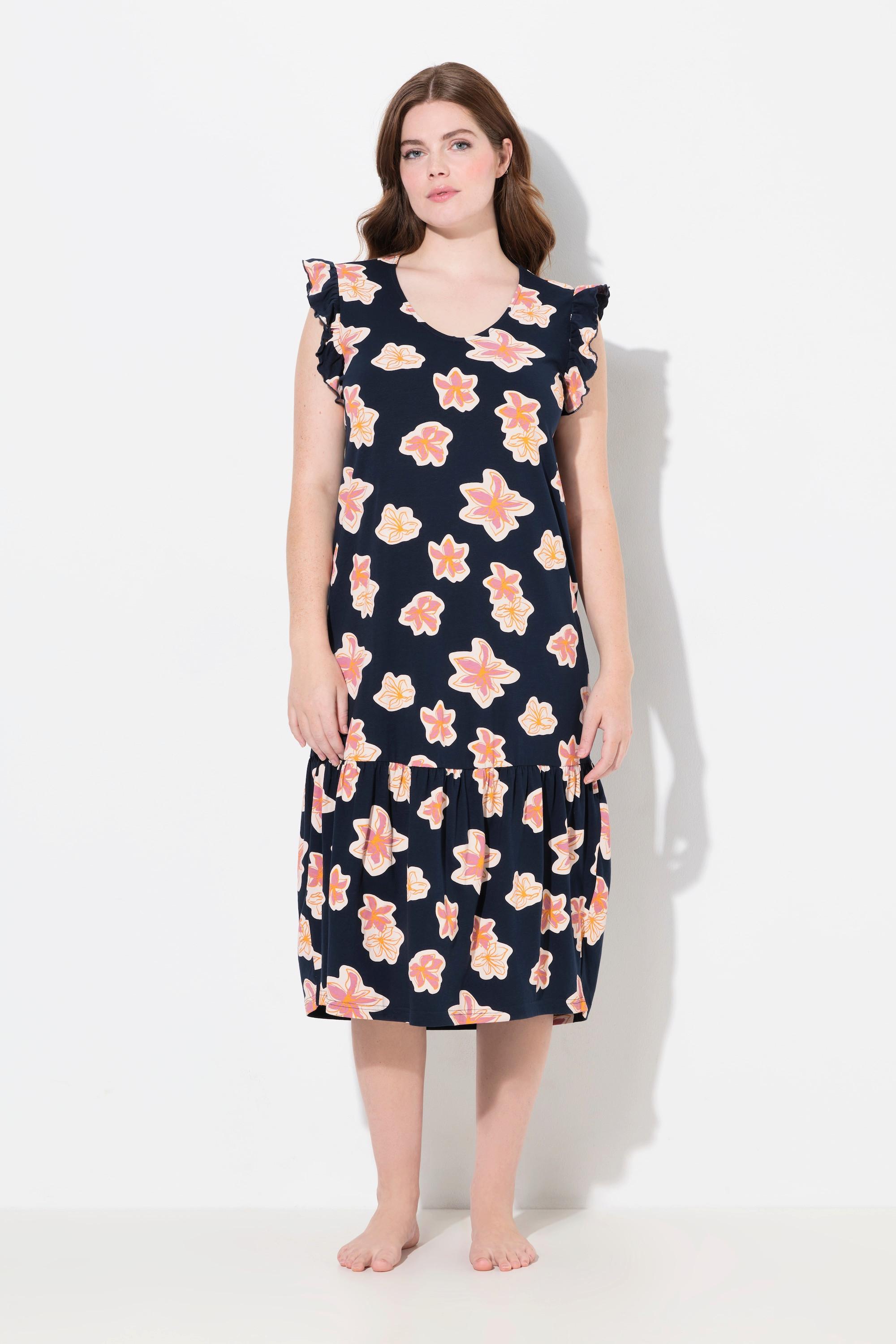 Ulla Popken Camicia Da Notte Floreale Scollo A V Manica A Farfalla