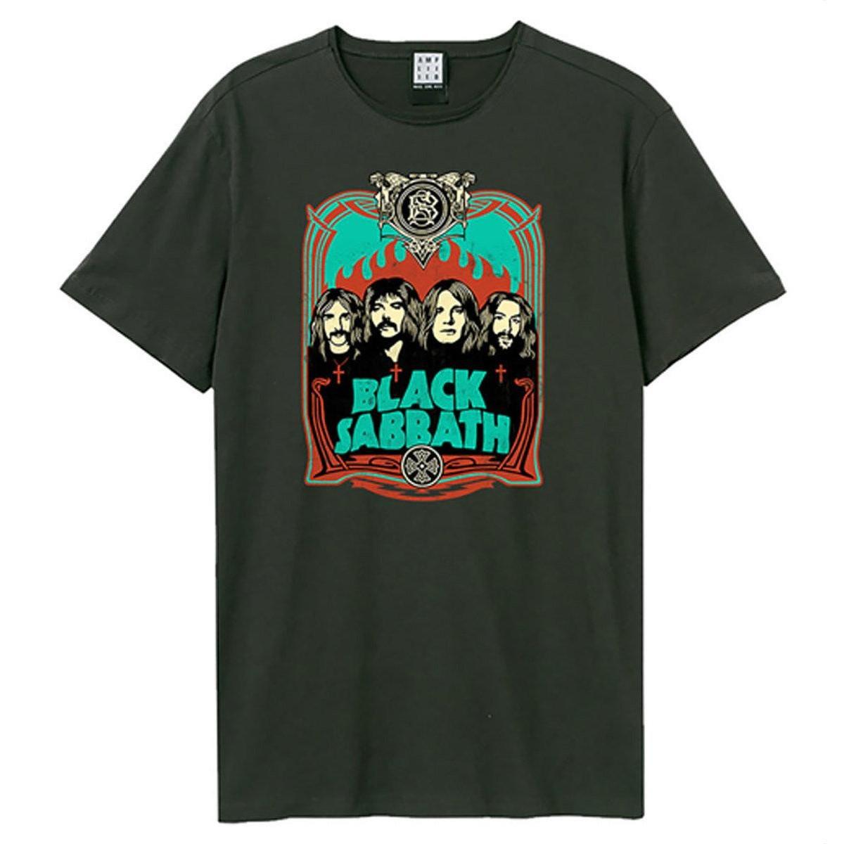 Questa T-shirt presenta un classico girocollo e maniche corte, offrendo una vestibilità comoda e versatile. La parte anteriore è adornata con una vivace stampa grafica dell'iconica band Black Sabbath, rendendola un capo distintivo per i fan.