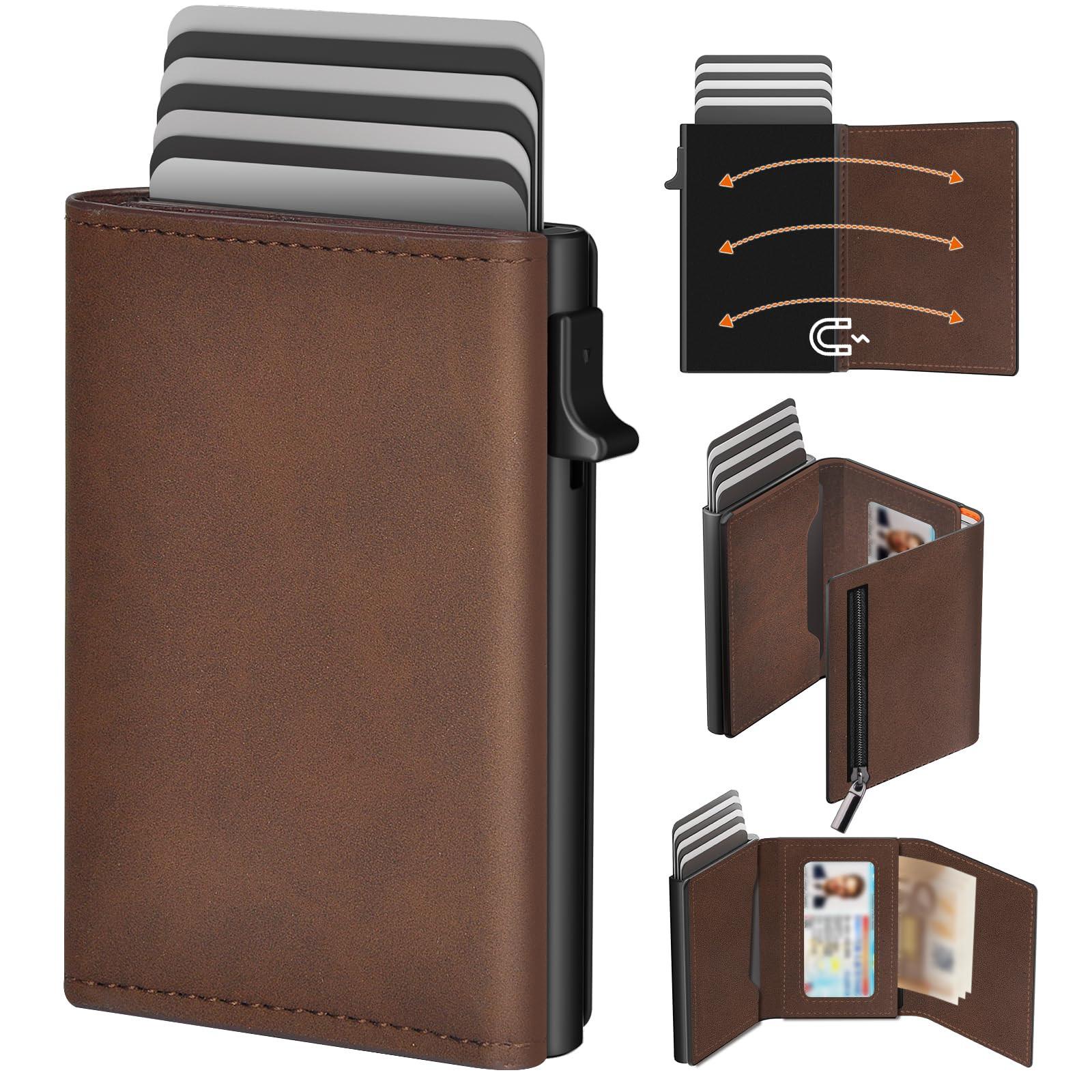 Il portafoglio è dotato di uno scomparto per carte a scomparsa per un accesso rapido a un massimo di 6 carte con la semplice pressione di un pulsante. Un magnete interno nella custodia in PU fissa saldamente la custodia e lo scomparto. Include anche un pratico portamonete con cerniera per riporre facilmente le monete.