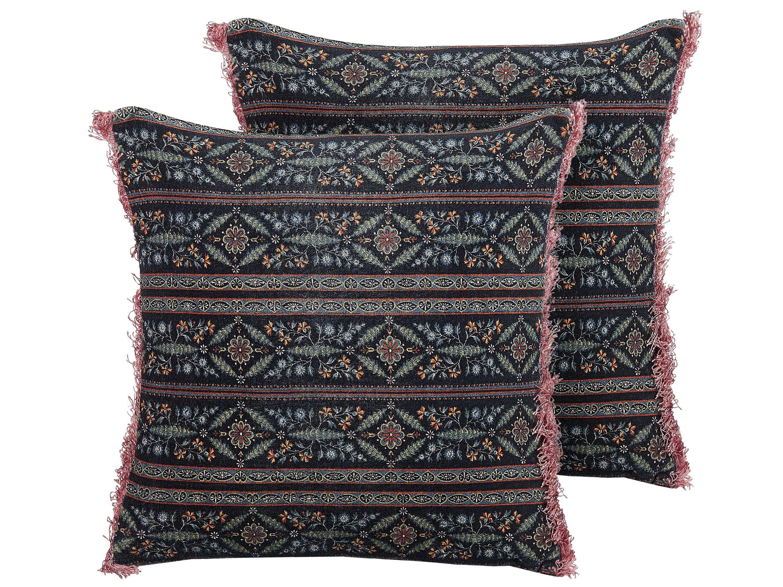 Coppia di cuscini con motivo floreale. Accessori unici dallo stile inconfondibile, con questo set di 2 cuscini decorativi, realizzati in tessuto di velluto di alta qualità. Il motivo floreale si sposa bene con le nappe decorative. La parte anteriore presenta una consistenza in velluto morbido al tatto. Il rivestimento in cotone è dotato di una cerniera che lo rende facile da pulire.