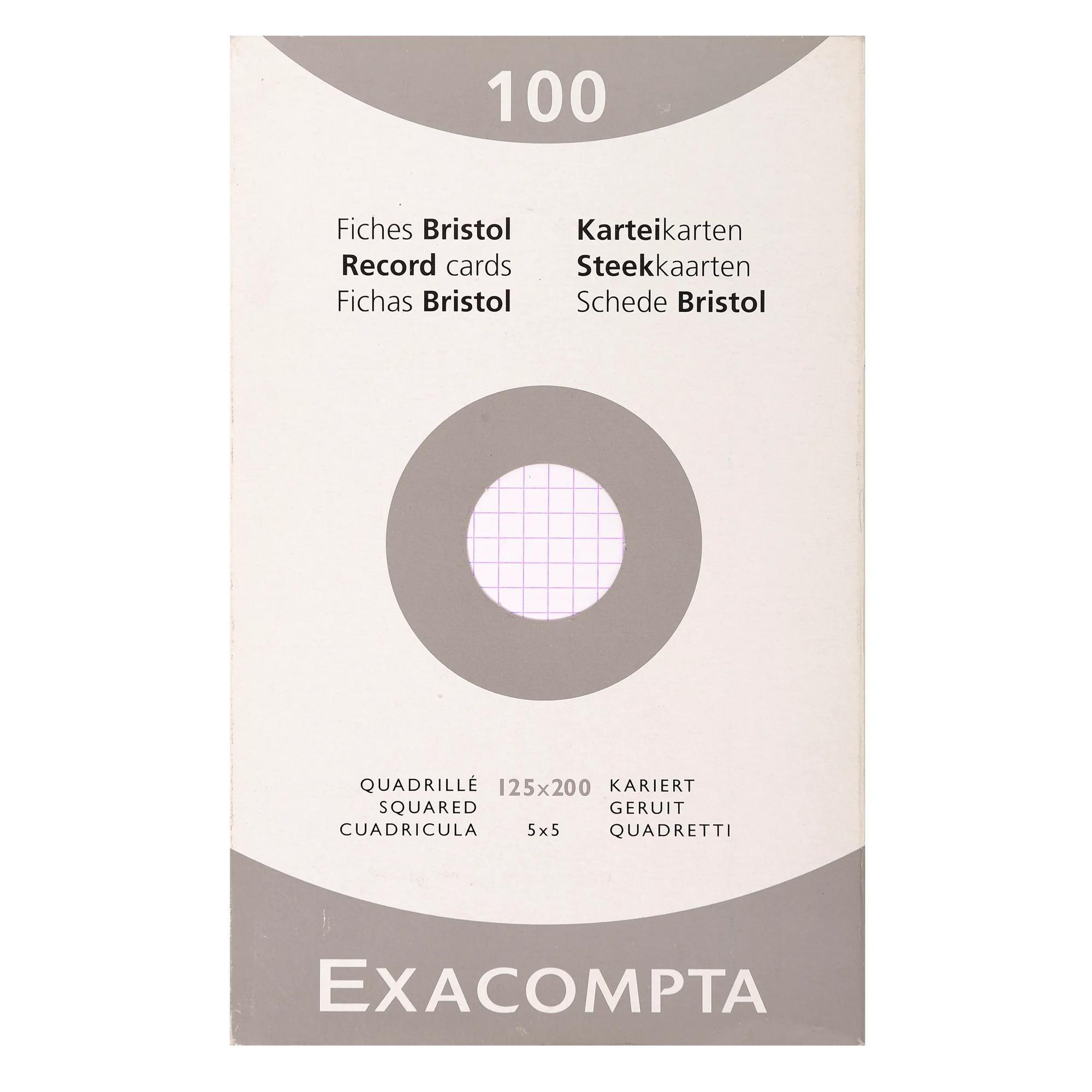 Exacompta Confezione 100 cartoncini bristol bianco a quadretti non perforati 125x200mm - x 12