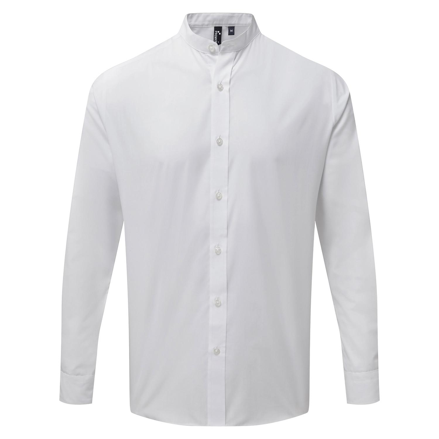 Questa camicia a maniche lunghe presenta un collo alla coreana, offrendo un'estetica pulita e moderna. È progettata con un'abbottonatura completa e polsini abbottonati, rendendola un'aggiunta versatile a qualsiasi guardaroba.