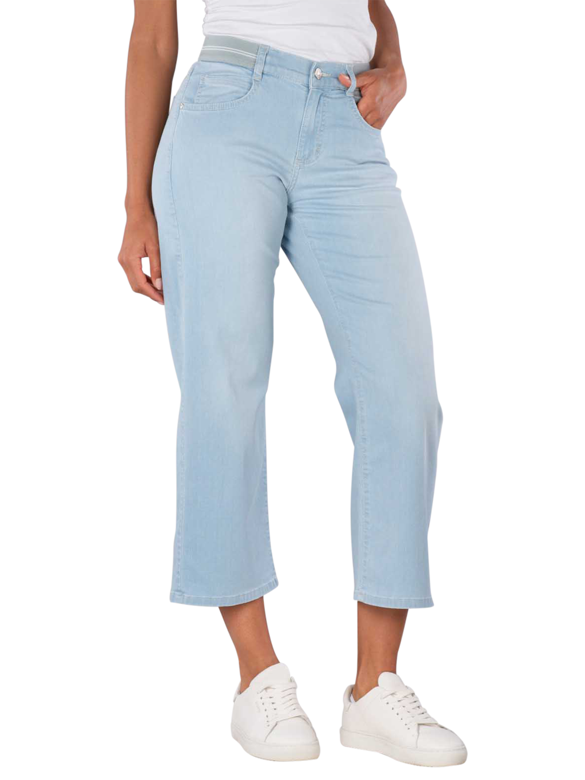 I jeans Angels Linn Sporty Wide Leg «The Light One» nel trendy blu sbiancato offrono una vestibilità comoda, dritta e ampia con lunghezza 7/8. Sono realizzati in materiale stretch leggero e di alta qualità per un comfort ottimale. La vita media e la pratica cerniera con elastico assicurano una vestibilità perfetta. Questi jeans ecologici sono ideali per le donne attente allo stile.