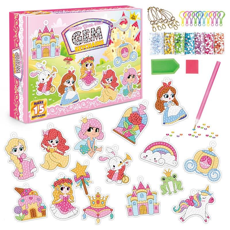 Activity-board, Diamant Malerei Schlüsselanhänger, 5D Diamant Malerei Schlüsselanhänger Kits Kinder DIY Prinzessin Diamant Anhänger Ornamente