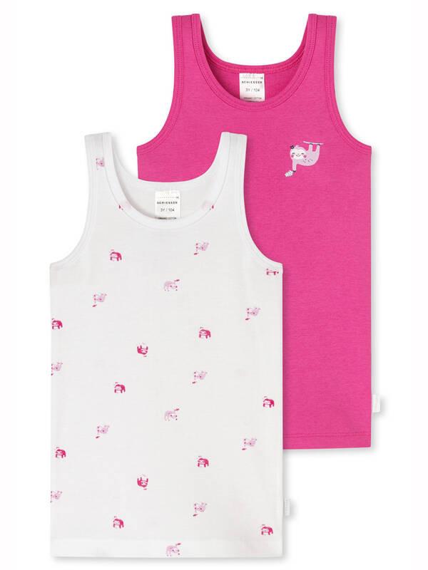Canotte da bambina in una pratica confezione doppia, con un divertente motivo a animaletti e una stampa all-over