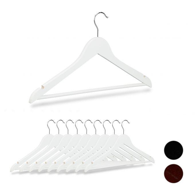 Le grucce in legno in set da 10 sono compagne affidabili nel tuo guardaroba. Grazie alle tacche non devi preoccuparti che i vestiti o le maglie scivolino. Con l'aiuto dell'asta puoi appendere camicie, magliette o camicette alla gruccia con la stessa precisione dei pantaloni. I bordi arrotondati impediscono la formazione di pieghe antiestetiche. I ganci possono essere girati come preferisci, così puoi scegliere come appendere la gruccia in legno nell'armadio.