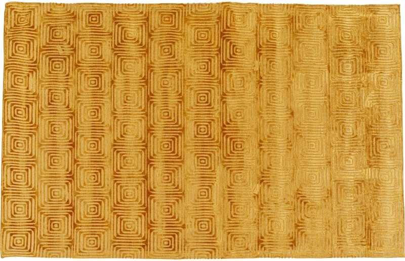 - Tappeto rettangolare in giallo caldo realizzato in viscosa e cotone con motivo grafico tono su tono