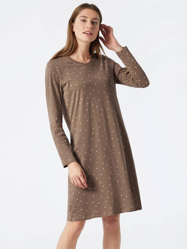 Questa camicia da notte SCHIESSER a maniche lunghe combina un design affascinante con il massimo comfort. Presenta una stampa a pois minimalista, offrendo un look casual e una silhouette rilassata. Il carré sulle spalle con pieghe sul retro garantisce una maggiore libertà di movimento.