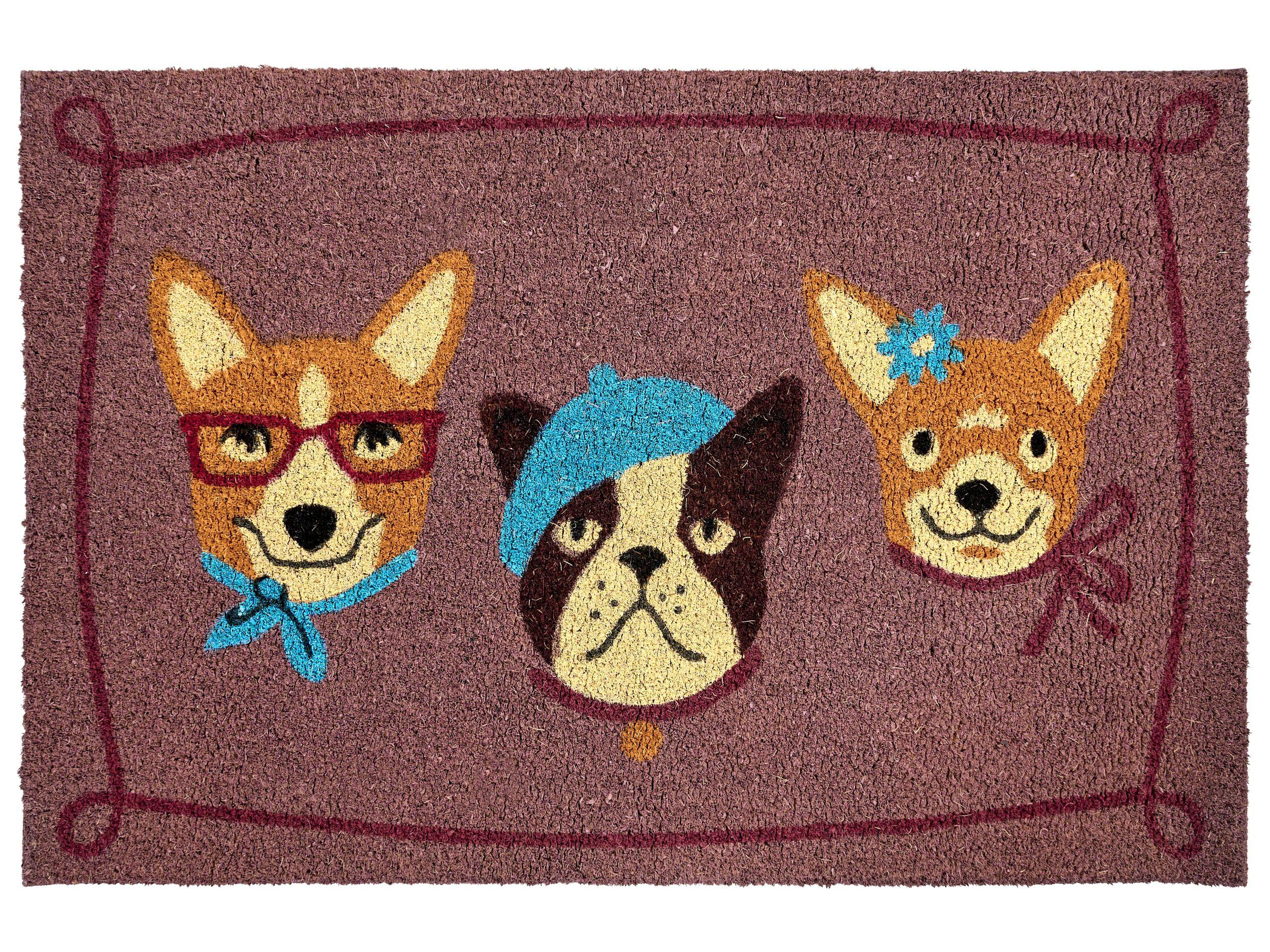 Zerbino antiscivolo con motivo animale. Aggiungi un tocco di fascino al tuo ingresso con questo zerbino decorativo e funzionale. Caratterizzato da un design creativo con tre cani colorati, è realizzato in resistente fibra di cocco e ha un retro antiscivolo, rendendolo un modo divertente e pratico per mantenere puliti i tuoi pavimenti.