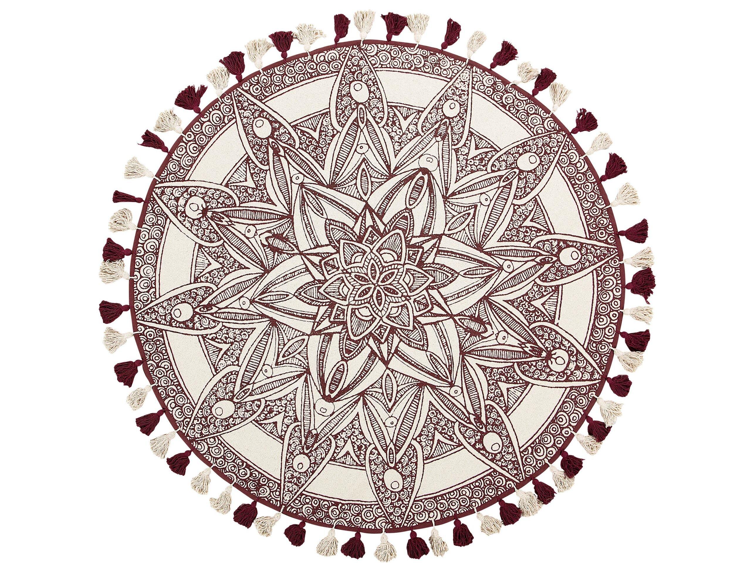 Tappeto in tessuto dal design orientale con frangette. Ammira i motivi intricati di questo tappeto e abbellisci qualsiasi interno. La stampa ispirata ai mandala in rosso, a contrasto con la base color crema, crea una composizione interessante destinata ad attirare l'attenzione e a migliorare l'aspetto dell'ambiente circostante. Il cotone naturale utilizzato per la realizzazione di questo articolo garantisce qualità e durata. Questo tappeto, con il suo eccellente aspetto, è progettato per durare nel tempo.