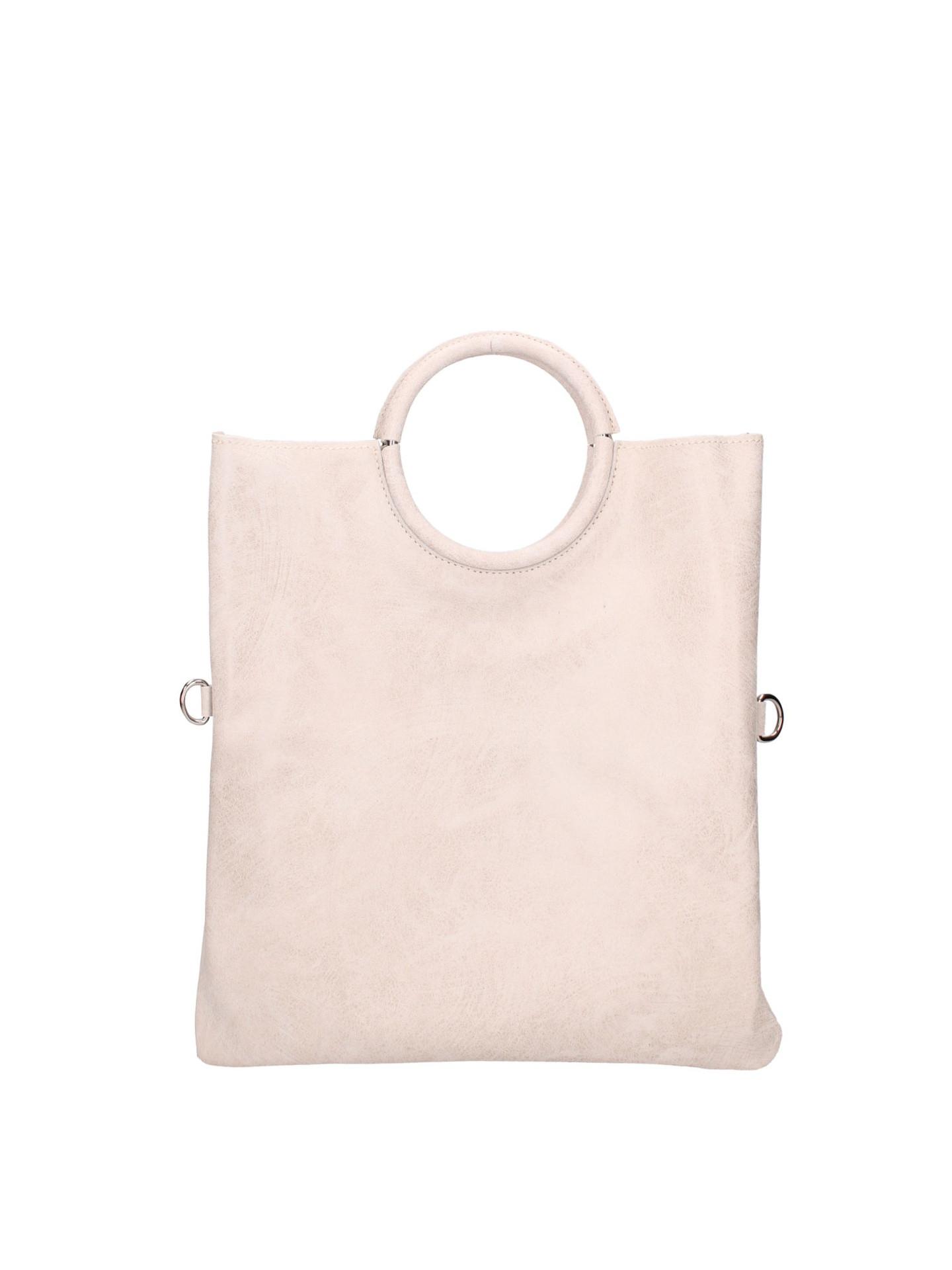 Questa borsa a mano da donna, realizzata in Italia, presenta un design unico con un manico superiore circolare, offrendo un accessorio distintivo ed elegante. Il suo interno spazioso offre ampio spazio per gli essenziali quotidiani, rendendola sia alla moda che funzionale.