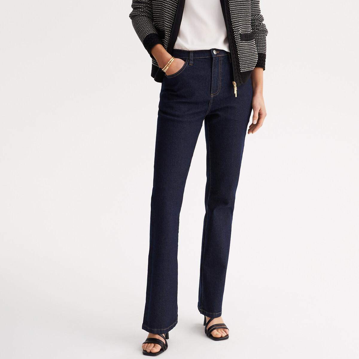 Questi jeans bootcut offrono una silhouette intramontabile, sia lusinghiera che versatile. Il design presenta un classico stile a cinque tasche e una comoda vestibilità regolare sulla coscia, svasandosi leggermente dal ginocchio in giù per accogliere gli stivali. Questo prodotto è realizzato con un processo di lavaggio a risparmio idrico ed è certificato OEKO-TEX® Standard 100.