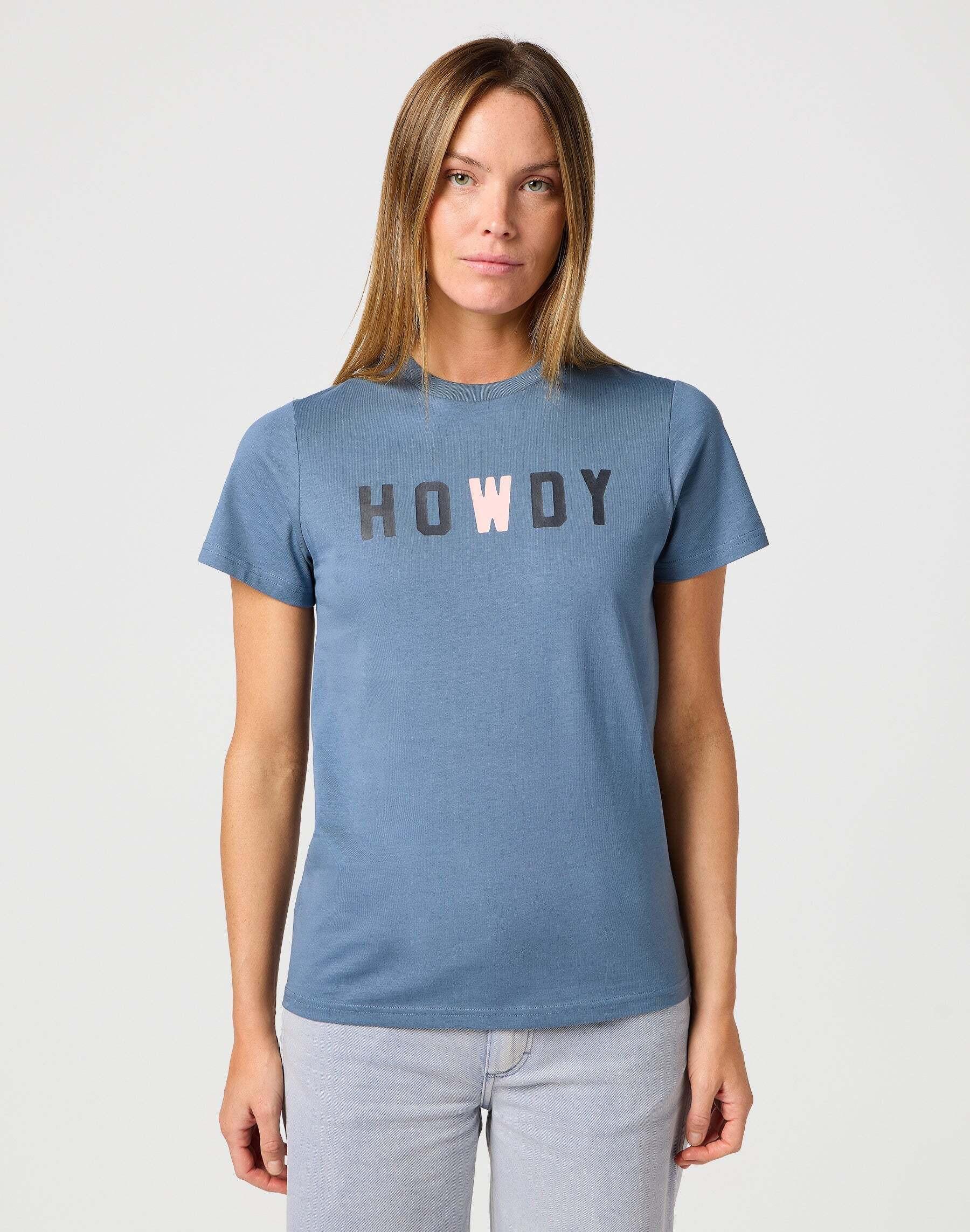 Questa T-shirt a maniche corte da donna combina comfort casual con una stampa grafica "Howdy" accattivante che celebra la tradizione western. La vestibilità regolare assicura una calzata confortevole e aggiunge un tocco rilassato a un guardaroba casual.